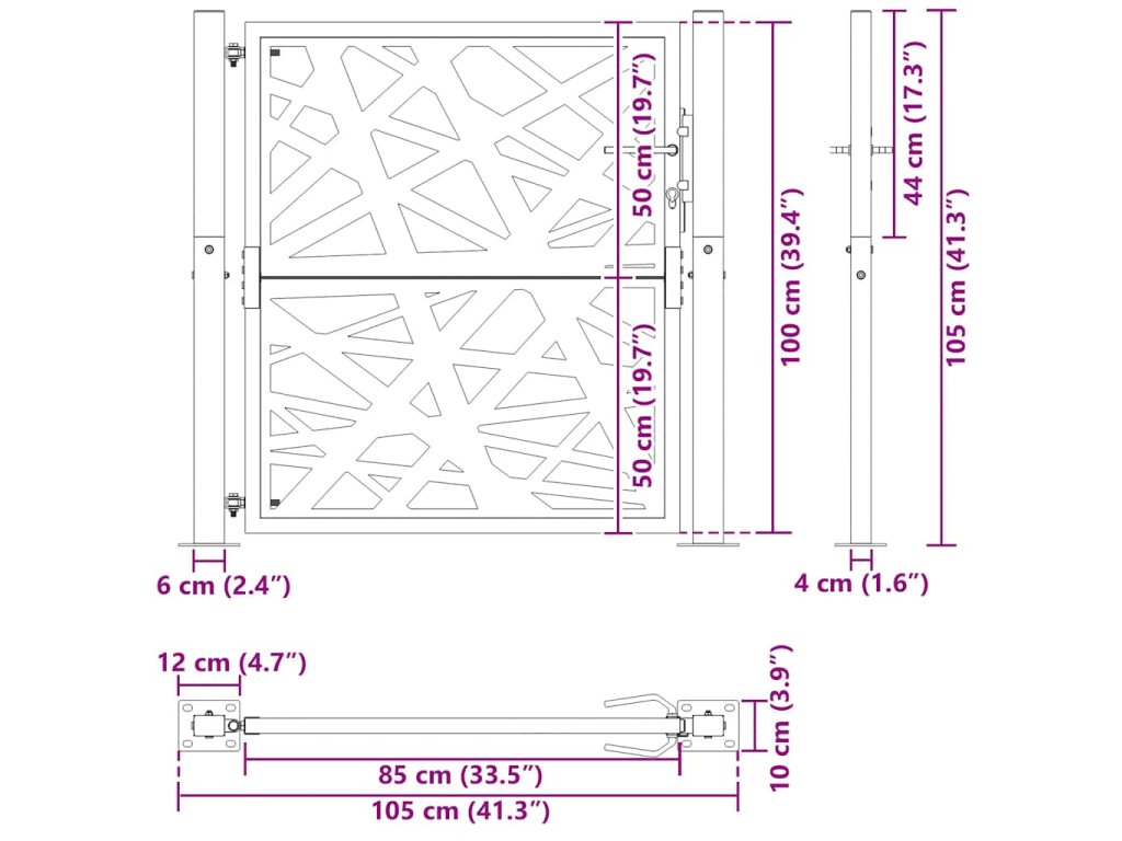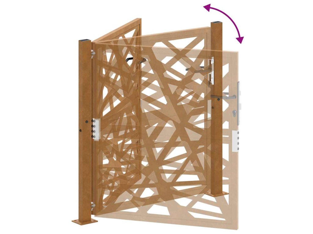 - Odolná konstrukce: Tato plotová brána je vyrobena z oceli odolné proti povětrnostním vlivům. Povětrnostně odolná ocel je ze své podstaty antikorozní. Při prvním vystavení atmosférickým podmínkám se na ní vytvoří ochranná vrstva proti korozi. Nemusíte ji tedy natírat. To vám může pomoci ušetřit náklady na údržbu a opravy. Výrazná hnědá barva na povětrnostní oceli jistě upoutá pozornost. V neposlední řadě je povětrnostní ocel výjimečně odolná a obstojí ve zkoušce času.