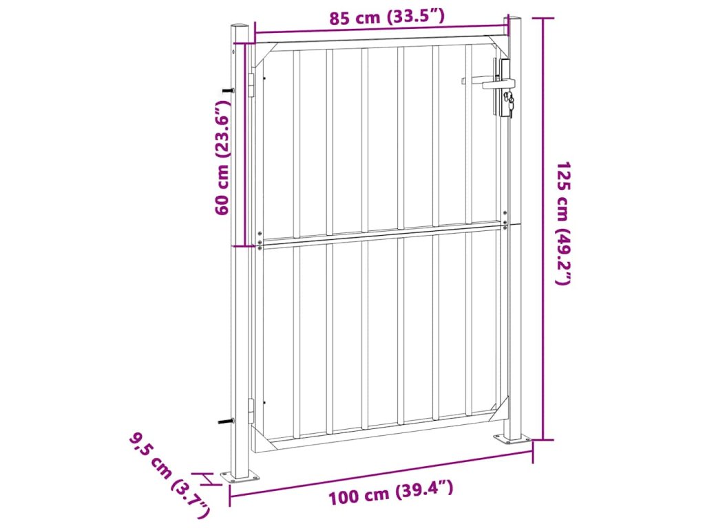 - Snadná instalace: Tato vchodová branka se dodává se dvěma pevnými sloupky a robustními panty umožňujícími snadnou instalaci.