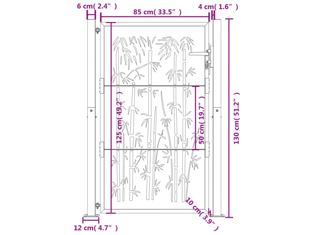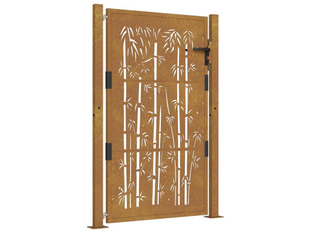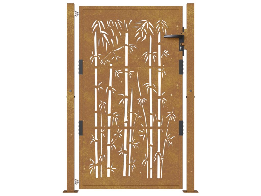 - Odolná konstrukce: Tato zahradní branka je vyrobená z cortenové oceli. Cortenová ocel, také známá jako povětrnostně odolná ocel. Je ze své podstaty antikorozní. Při prvním vystavení atmosférickým podmínkám se na ní vytvoří rezavá ochranná vrstva proti korozi. Nemusíte ji tedy natírat. Tím ušetříte náklady na údržbu a opravy. Výrazný hnědý odstín cortenové oceli jistě upoutá pozornost. Povětrnostně odolná ocel je výjimečně odolná a obstojí ve zkoušce času.