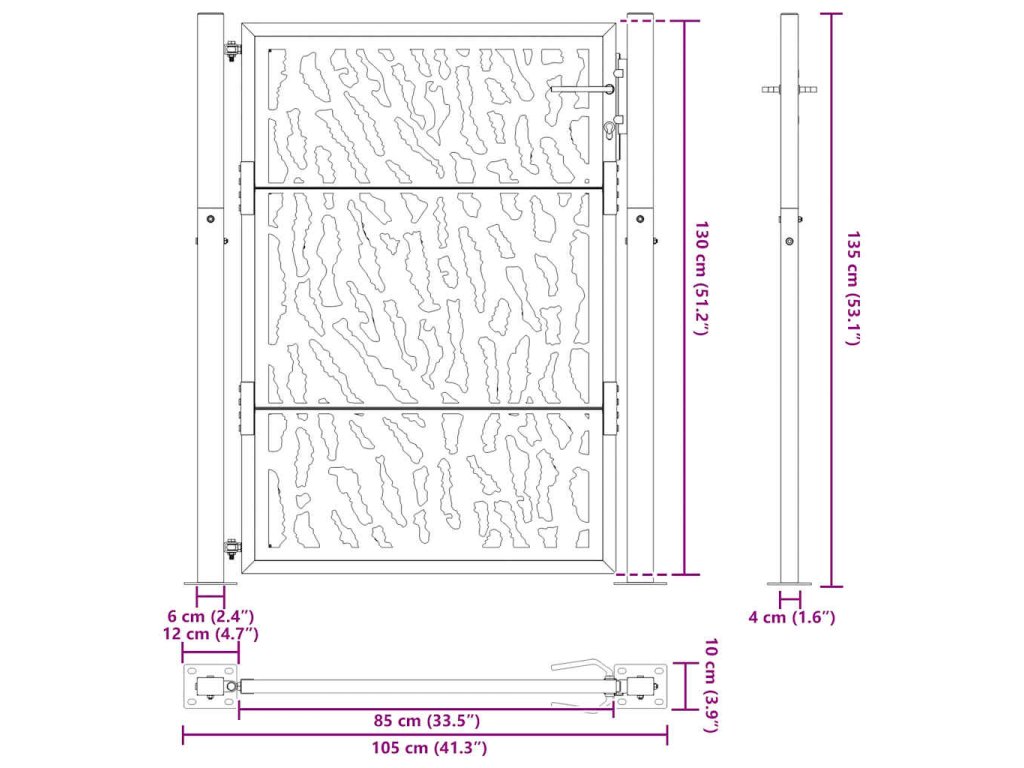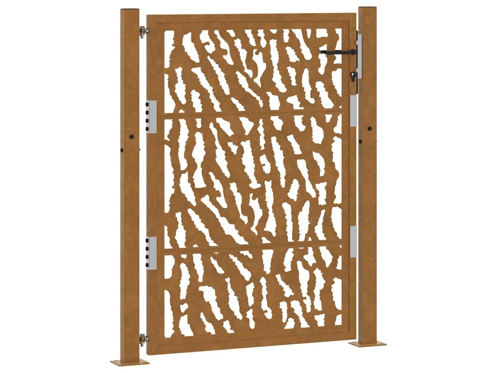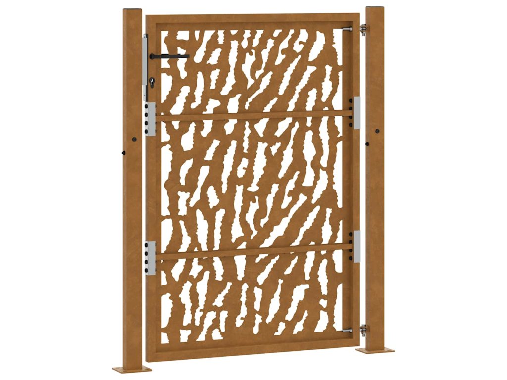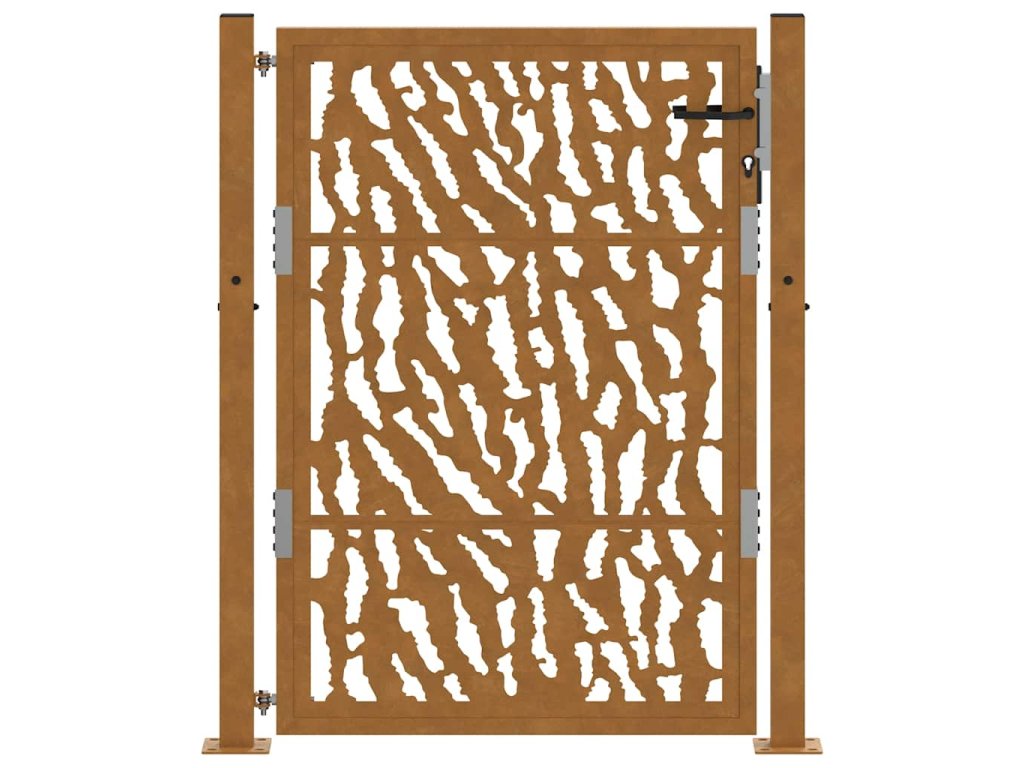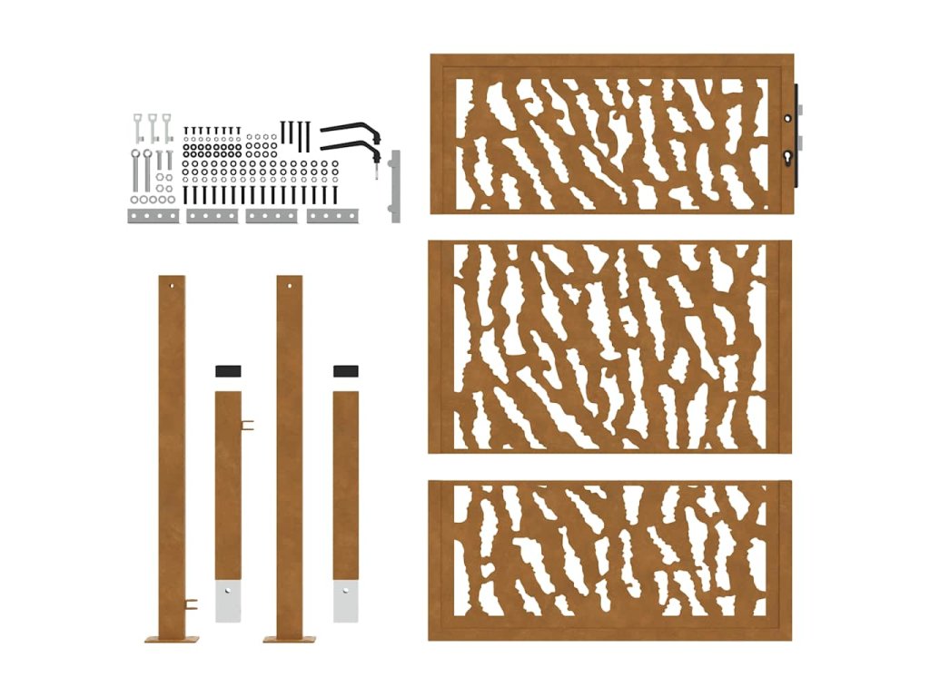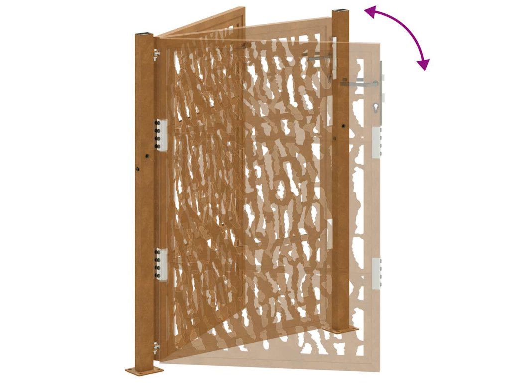 - Odolná konstrukce: Tato plotová brána je vyrobena z oceli odolné proti povětrnostním vlivům. Povětrnostně odolná ocel je ze své podstaty antikorozní. Při prvním vystavení atmosférickým podmínkám se na ní vytvoří ochranná vrstva proti korozi. Nemusíte ji tedy natírat. To vám může pomoci ušetřit náklady na údržbu a opravy. Výrazná hnědá barva na povětrnostní oceli jistě upoutá pozornost. V neposlední řadě je povětrnostní ocel výjimečně odolná a obstojí ve zkoušce času.