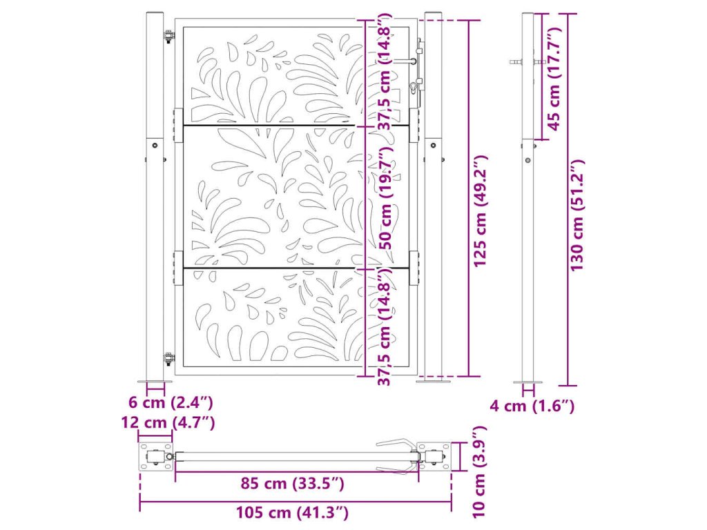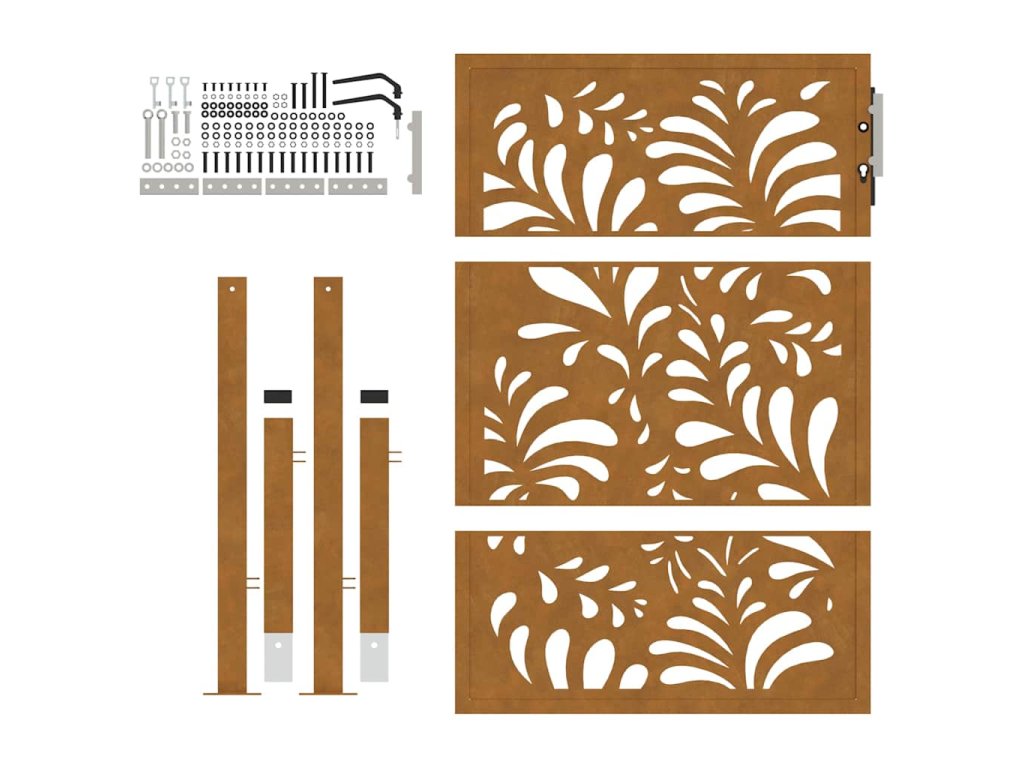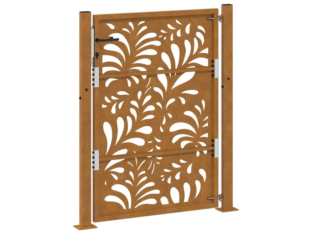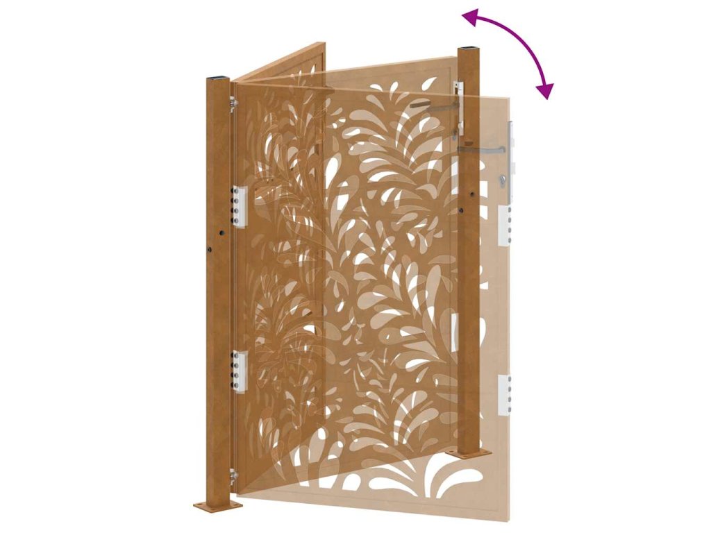 - Odolná konstrukce: Tato plotová brána je vyrobena z oceli odolné proti povětrnostním vlivům. Povětrnostně odolná ocel je ze své podstaty antikorozní. Při prvním vystavení atmosférickým podmínkám se na ní vytvoří ochranná vrstva proti korozi. Nemusíte ji tedy natírat. To vám může pomoci ušetřit náklady na údržbu a opravy. Výrazná hnědá barva na povětrnostní oceli jistě upoutá pozornost. V neposlední řadě je povětrnostní ocel výjimečně odolná a obstojí ve zkoušce času.