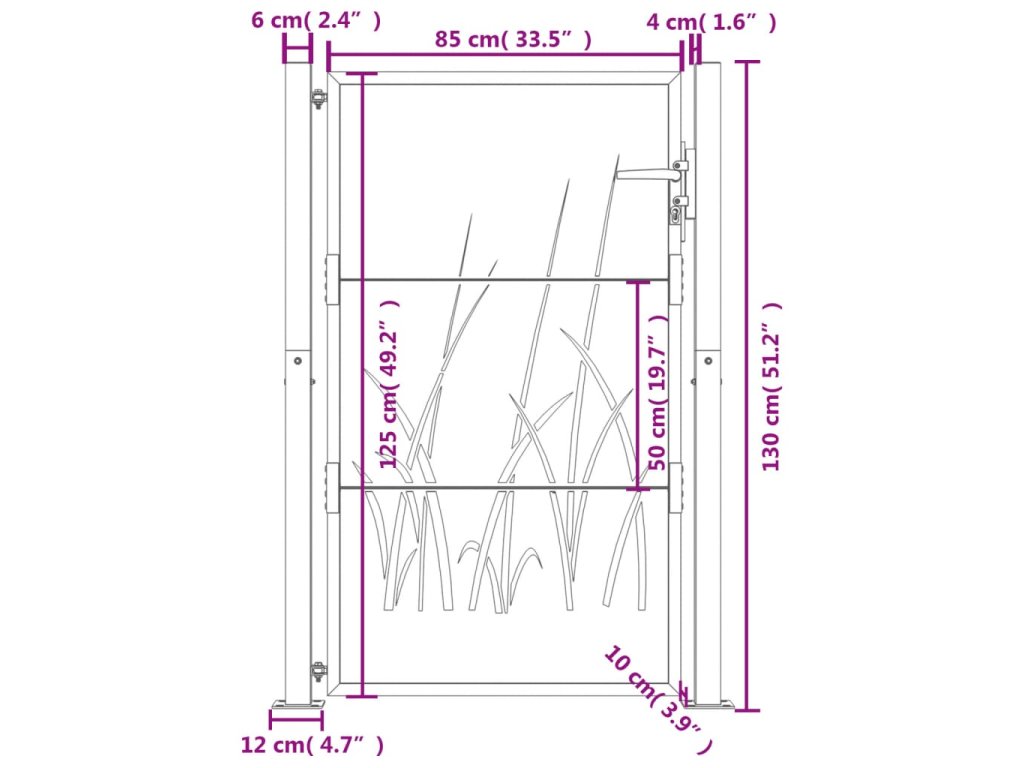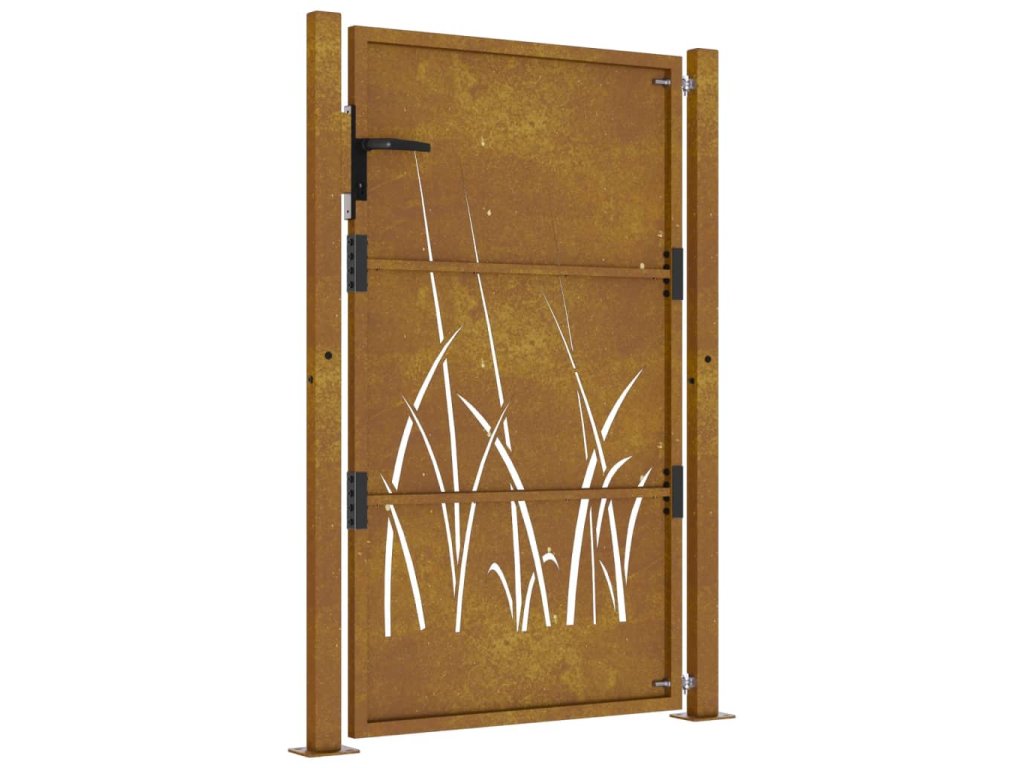 - Odolná konstrukce: Tato zahradní branka je vyrobená z cortenové oceli. Cortenová ocel, také známá jako povětrnostně odolná ocel. Je ze své podstaty antikorozní. Při prvním vystavení atmosférickým podmínkám se na ní vytvoří rezavá ochranná vrstva proti korozi. Nemusíte ji tedy natírat. Tím ušetříte náklady na údržbu a opravy. Výrazný hnědý odstín cortenové oceli jistě upoutá pozornost. Povětrnostně odolná ocel je výjimečně odolná a obstojí ve zkoušce času.