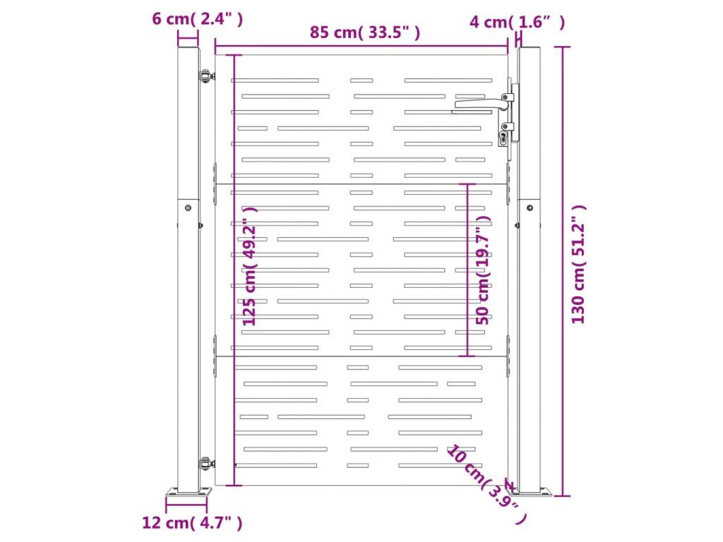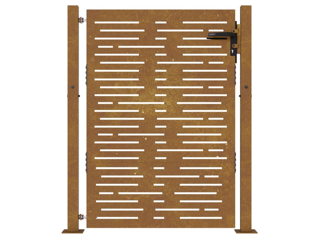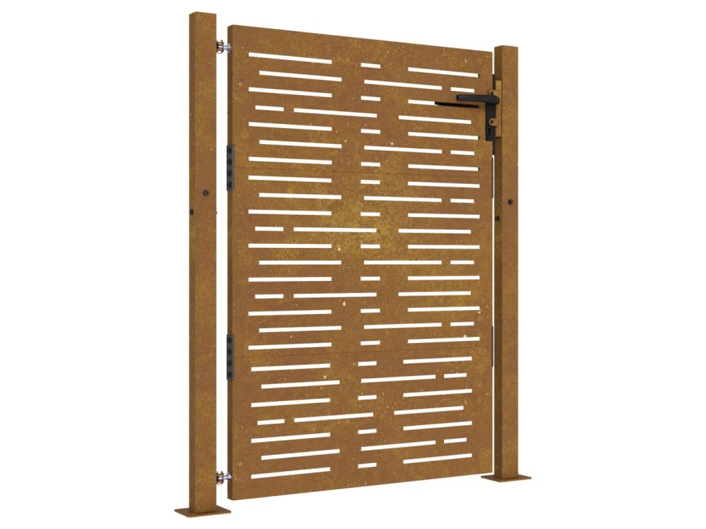 - Materiál s dlouhou životností: Kovová branka je vyrobená z cortenové oceli. Cortenová ocel, také známá jako povětrnostně odolná ocel. Je ze své podstaty antikorozní. Při prvním vystavení atmosférickým podmínkám se na ní vytvoří rezavá ochranná vrstva proti korozi. Nemusíte ji tedy natírat. Tím ušetříte náklady na údržbu a opravy. Výrazný hnědý odstín cortenové oceli jistě upoutá pozornost. Povětrnostně odolná ocel je výjimečně odolná a obstojí ve zkoušce času.