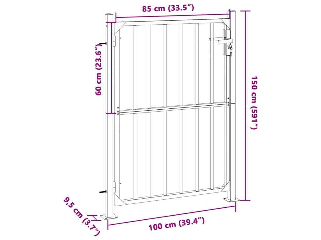 - Odolný materiál: Plotová branka je vyrobena z odolné nerezové oceli, která skvěle vzdoruje korozi a rzi a zajišťuje dlouholeté spolehlivé používání.