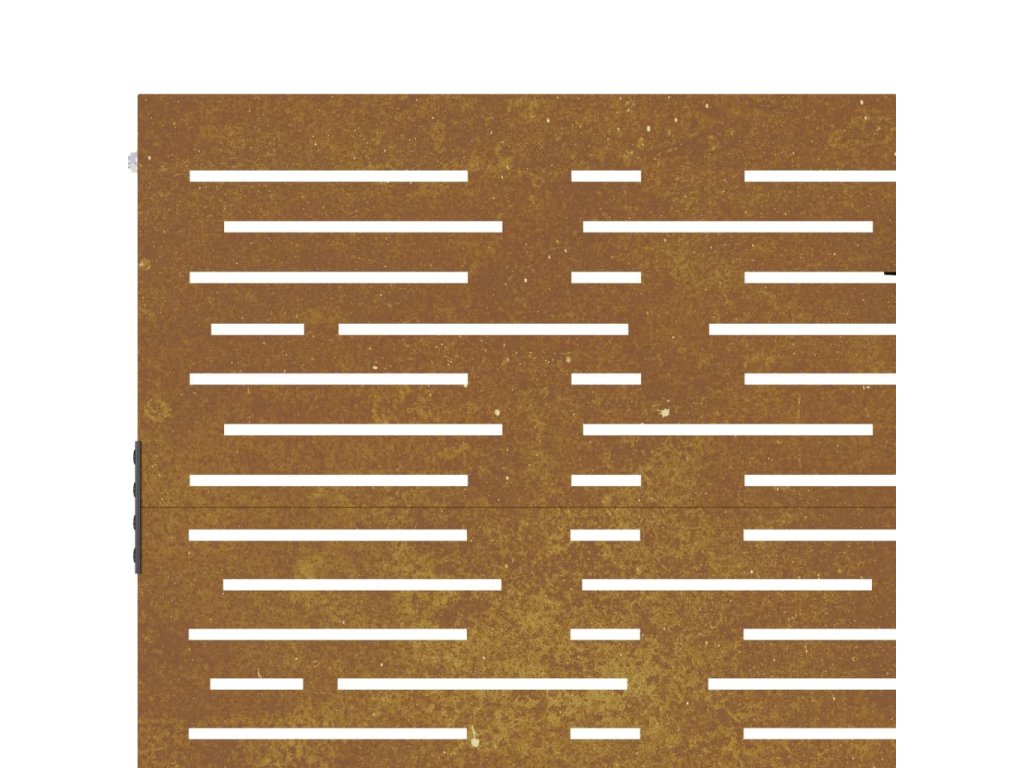 - Materiál s dlouhou životností: Kovová branka je vyrobená z cortenové oceli. Cortenová ocel, také známá jako povětrnostně odolná ocel. Je ze své podstaty antikorozní. Při prvním vystavení atmosférickým podmínkám se na ní vytvoří rezavá ochranná vrstva proti korozi. Nemusíte ji tedy natírat. Tím ušetříte náklady na údržbu a opravy. Výrazný hnědý odstín cortenové oceli jistě upoutá pozornost. Povětrnostně odolná ocel je výjimečně odolná a obstojí ve zkoušce času.