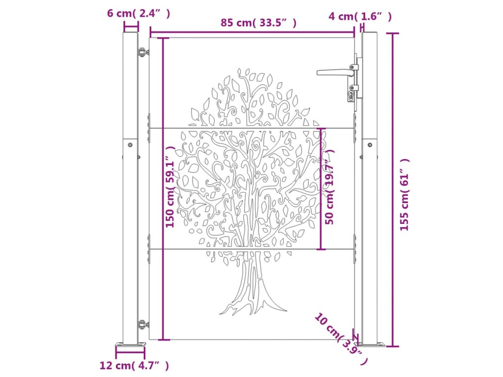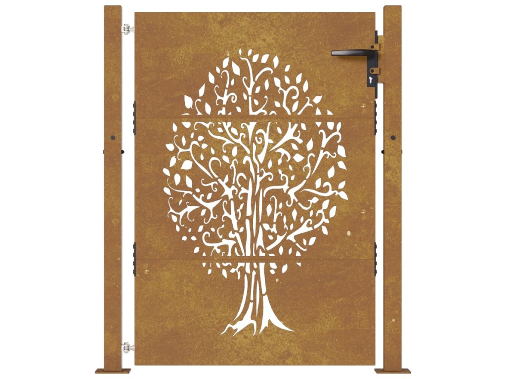 - Materiál s dlouhou životností: Kovová branka je vyrobená z cortenové oceli. Cortenová ocel, také známá jako povětrnostně odolná ocel. Je ze své podstaty antikorozní. Při prvním vystavení atmosférickým podmínkám se na ní vytvoří rezavá ochranná vrstva proti korozi. Nemusíte ji tedy natírat. Tím ušetříte náklady na údržbu a opravy. Výrazný hnědý odstín cortenové oceli jistě upoutá pozornost. Povětrnostně odolná ocel je výjimečně odolná a obstojí ve zkoušce času.