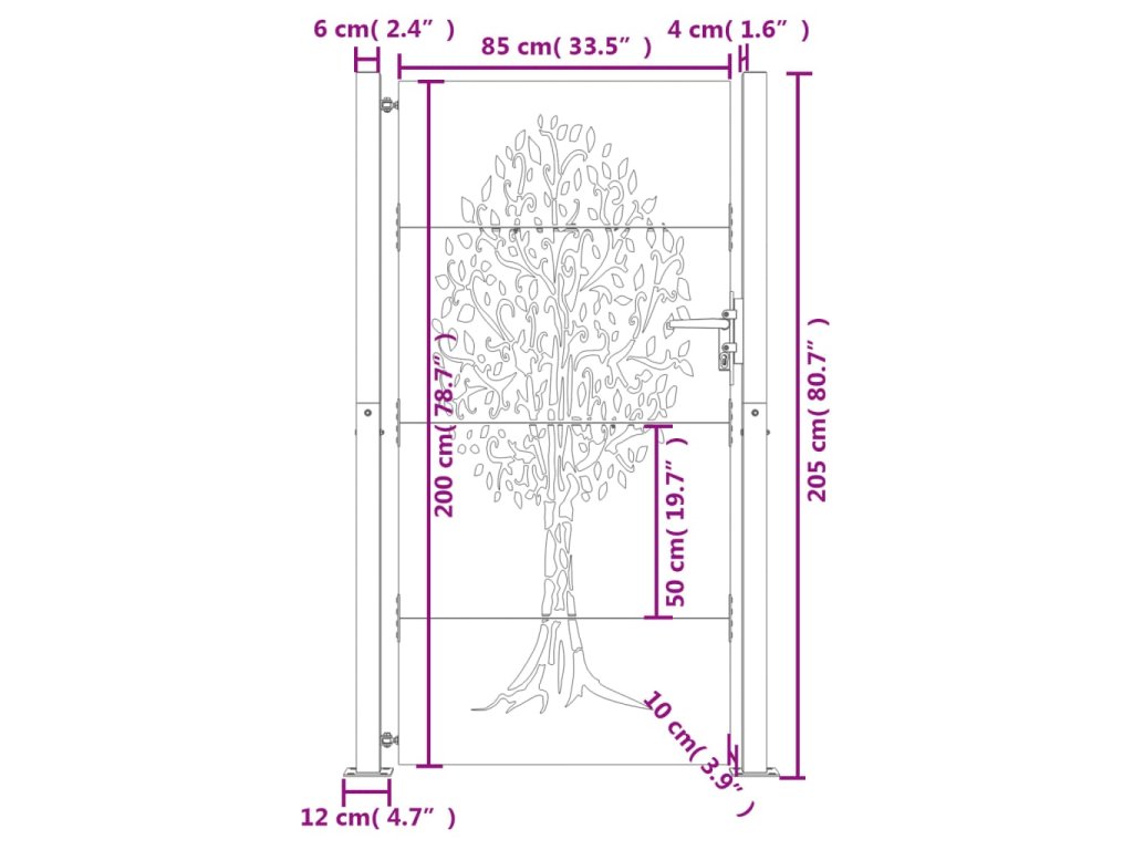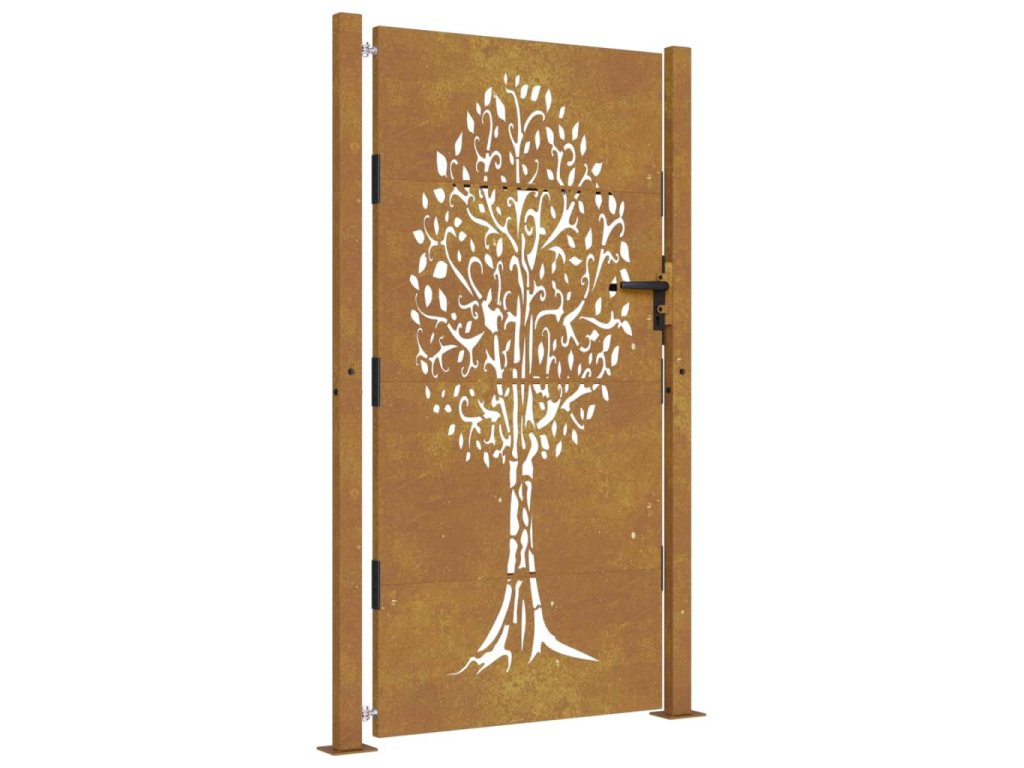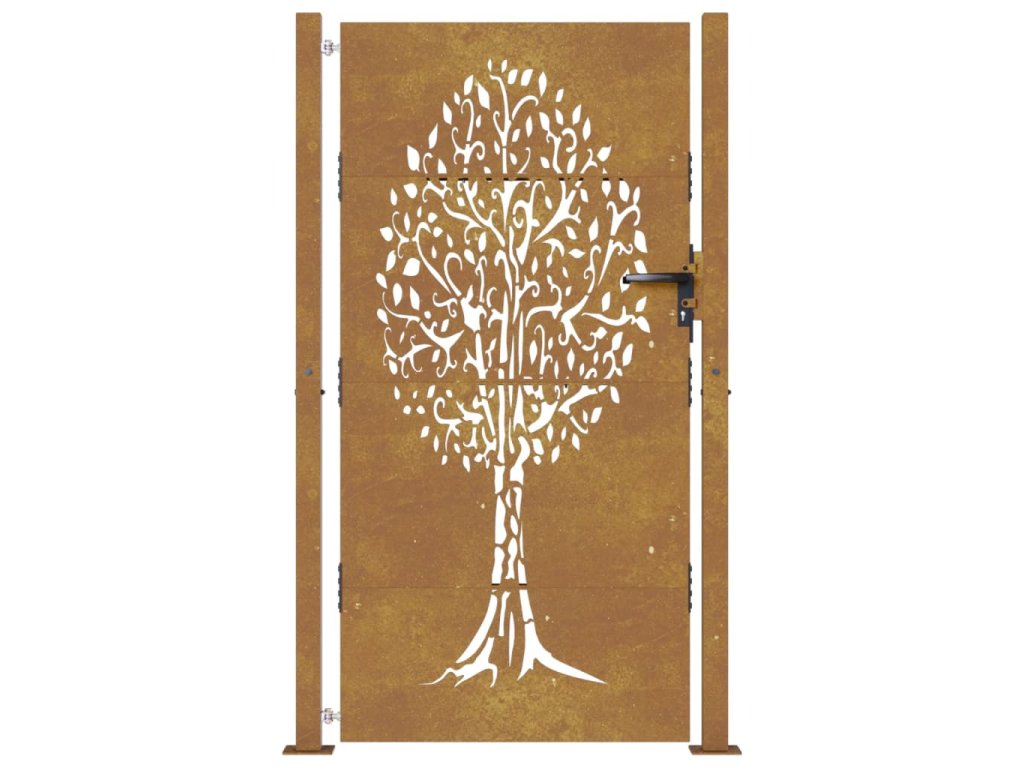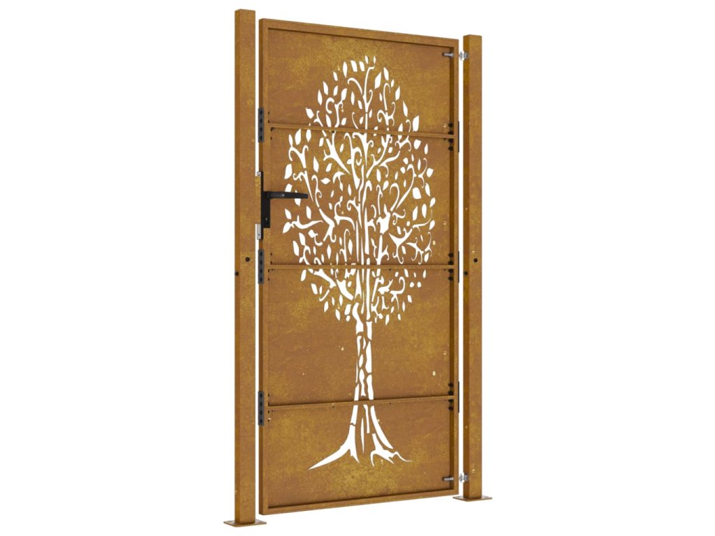- Materiál s dlouhou životností: Kovová branka je vyrobená z cortenové oceli. Cortenová ocel, také známá jako povětrnostně odolná ocel. Je ze své podstaty antikorozní. Při prvním vystavení atmosférickým podmínkám se na ní vytvoří rezavá ochranná vrstva proti korozi. Nemusíte ji tedy natírat. Tím ušetříte náklady na údržbu a opravy. Výrazný hnědý odstín cortenové oceli jistě upoutá pozornost. Povětrnostně odolná ocel je výjimečně odolná a obstojí ve zkoušce času.