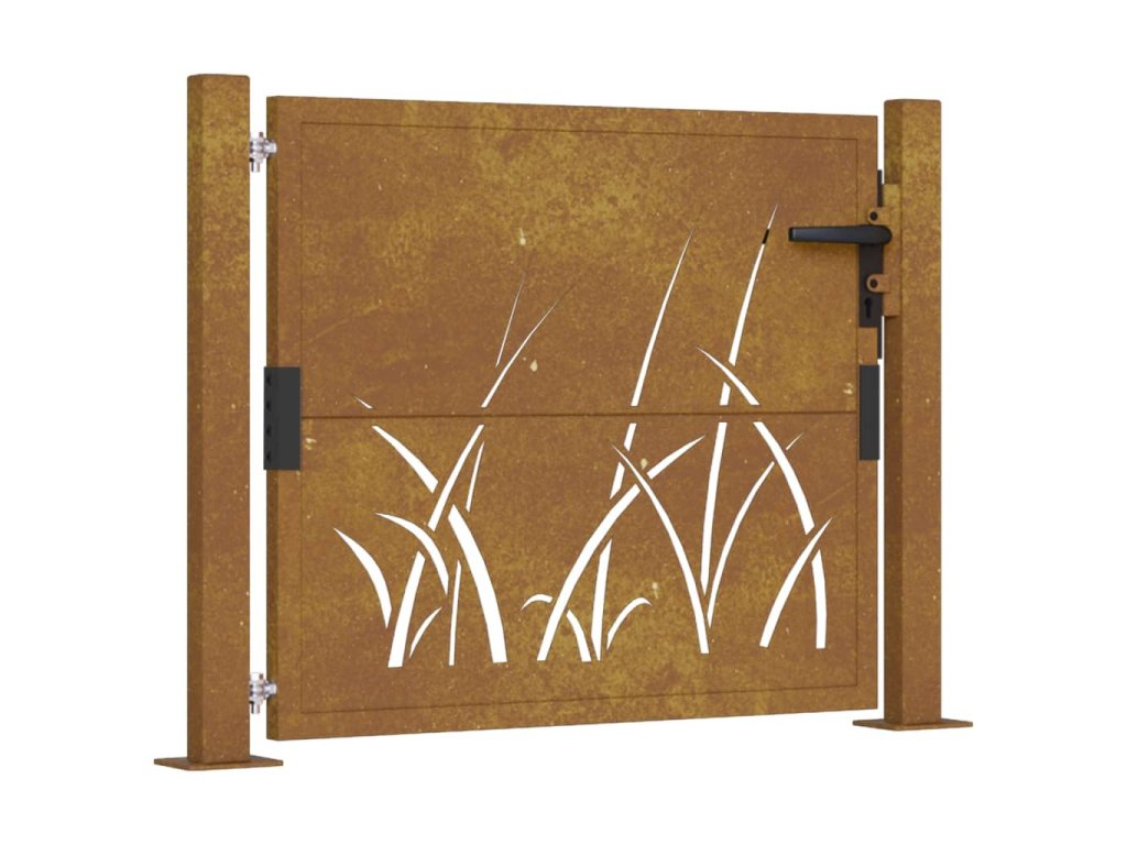 - Odolná konstrukce: Tato zahradní branka je vyrobená z cortenové oceli. Cortenová ocel, také známá jako povětrnostně odolná ocel. Je ze své podstaty antikorozní. Při prvním vystavení atmosférickým podmínkám se na ní vytvoří rezavá ochranná vrstva proti korozi. Nemusíte ji tedy natírat. Tím ušetříte náklady na údržbu a opravy. Výrazný hnědý odstín cortenové oceli jistě upoutá pozornost. Povětrnostně odolná ocel je výjimečně odolná a obstojí ve zkoušce času.