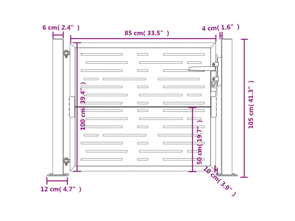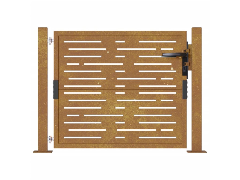- Odolná konstrukce: Tato zahradní branka je vyrobená z cortenové oceli. Cortenová ocel, také známá jako povětrnostně odolná ocel. Je ze své podstaty antikorozní. Při prvním vystavení atmosférickým podmínkám se na ní vytvoří rezavá ochranná vrstva proti korozi. Nemusíte ji tedy natírat. Tím ušetříte náklady na údržbu a opravy. Výrazný hnědý odstín cortenové oceli jistě upoutá pozornost. Povětrnostně odolná ocel je výjimečně odolná a obstojí ve zkoušce času.