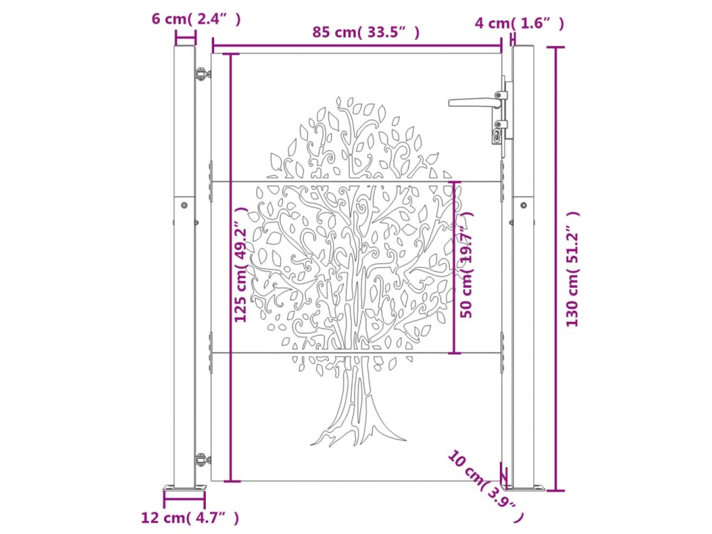 - Materiál s dlouhou životností: Kovová branka je vyrobená z cortenové oceli. Cortenová ocel, také známá jako povětrnostně odolná ocel. Je ze své podstaty antikorozní. Při prvním vystavení atmosférickým podmínkám se na ní vytvoří rezavá ochranná vrstva proti korozi. Nemusíte ji tedy natírat. Tím ušetříte náklady na údržbu a opravy. Výrazný hnědý odstín cortenové oceli jistě upoutá pozornost. Povětrnostně odolná ocel je výjimečně odolná a obstojí ve zkoušce času.