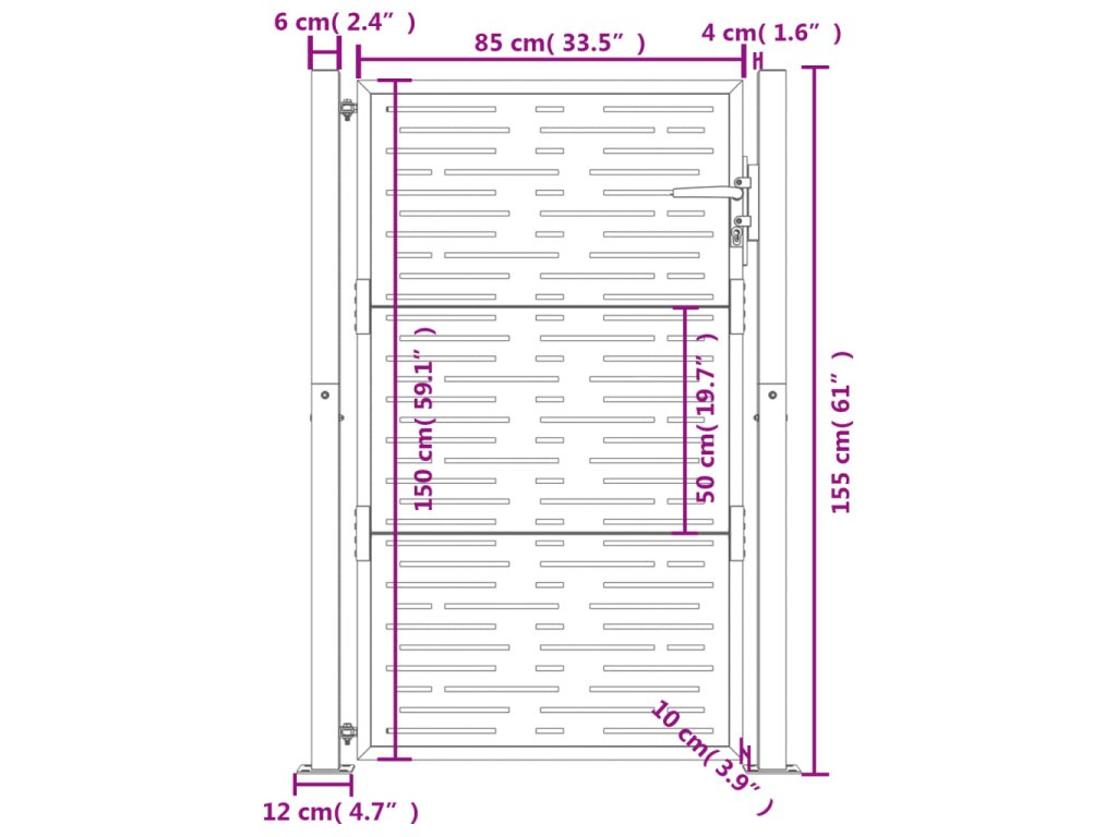 - Odolná konstrukce: Tato zahradní branka je vyrobená z cortenové oceli. Cortenová ocel, také známá jako povětrnostně odolná ocel. Je ze své podstaty antikorozní. Při prvním vystavení atmosférickým podmínkám se na ní vytvoří rezavá ochranná vrstva proti korozi. Nemusíte ji tedy natírat. Tím ušetříte náklady na údržbu a opravy. Výrazný hnědý odstín cortenové oceli jistě upoutá pozornost. Povětrnostně odolná ocel je výjimečně odolná a obstojí ve zkoušce času.