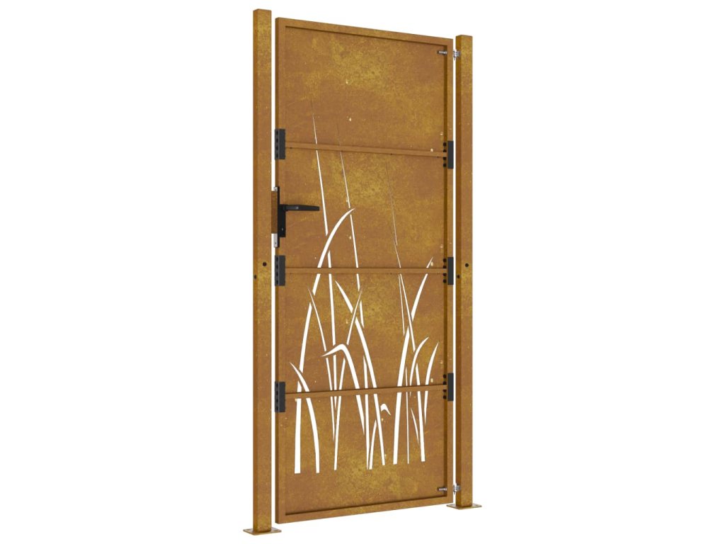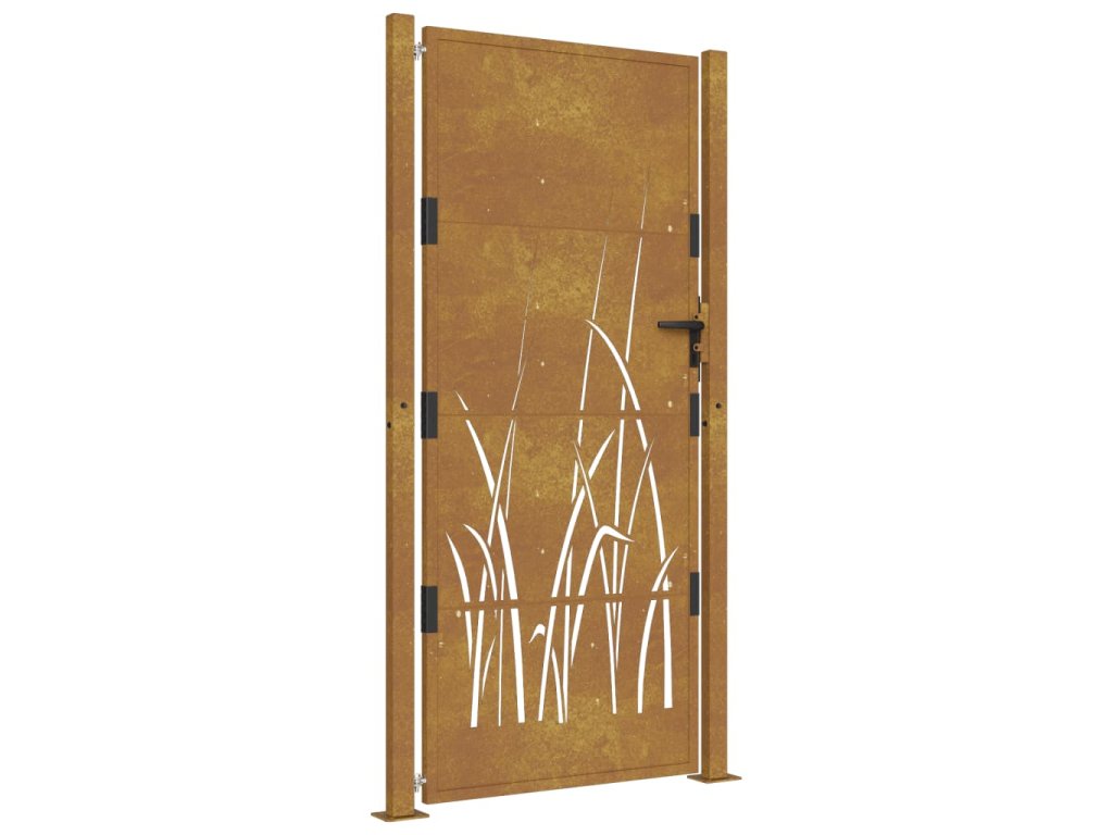 - Odolná konstrukce: Tato zahradní branka je vyrobená z cortenové oceli. Cortenová ocel, také známá jako povětrnostně odolná ocel. Je ze své podstaty antikorozní. Při prvním vystavení atmosférickým podmínkám se na ní vytvoří rezavá ochranná vrstva proti korozi. Nemusíte ji tedy natírat. Tím ušetříte náklady na údržbu a opravy. Výrazný hnědý odstín cortenové oceli jistě upoutá pozornost. Povětrnostně odolná ocel je výjimečně odolná a obstojí ve zkoušce času.