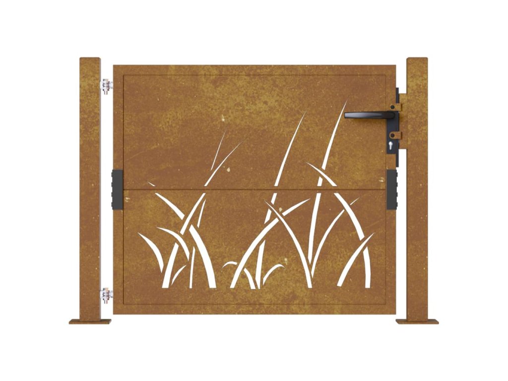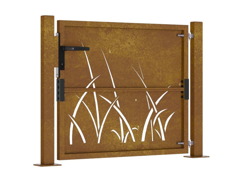 - Odolná konstrukce: Tato zahradní branka je vyrobená z cortenové oceli. Cortenová ocel, také známá jako povětrnostně odolná ocel. Je ze své podstaty antikorozní. Při prvním vystavení atmosférickým podmínkám se na ní vytvoří rezavá ochranná vrstva proti korozi. Nemusíte ji tedy natírat. Tím ušetříte náklady na údržbu a opravy. Výrazný hnědý odstín cortenové oceli jistě upoutá pozornost. Povětrnostně odolná ocel je výjimečně odolná a obstojí ve zkoušce času.