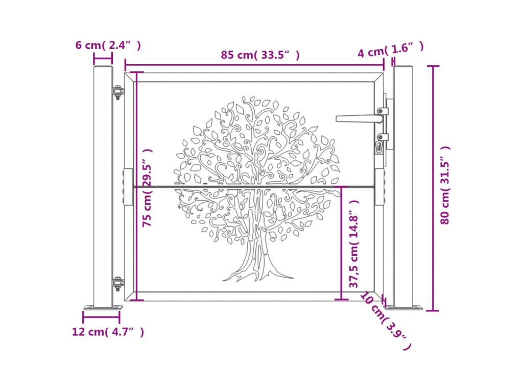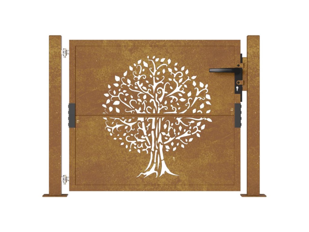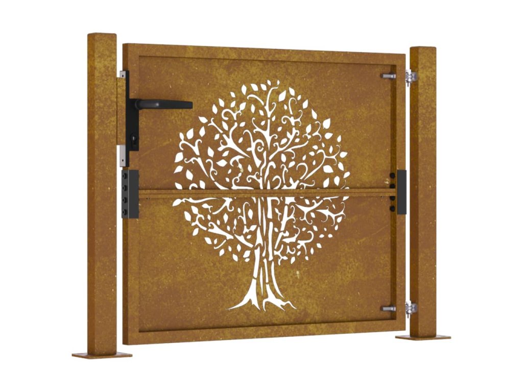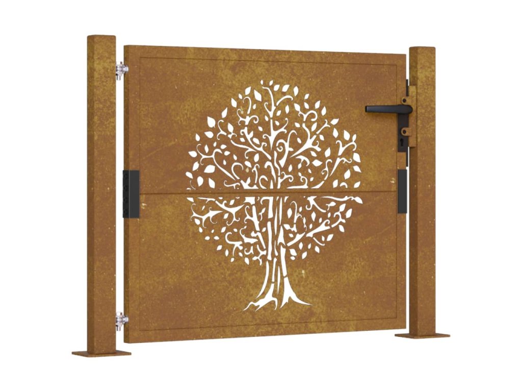 - Odolná konstrukce: Tato zahradní branka je vyrobená z cortenové oceli. Cortenová ocel, také známá jako povětrnostně odolná ocel. Je ze své podstaty antikorozní. Při prvním vystavení atmosférickým podmínkám se na ní vytvoří rezavá ochranná vrstva proti korozi. Nemusíte ji tedy natírat. Tím ušetříte náklady na údržbu a opravy. Výrazný hnědý odstín cortenové oceli jistě upoutá pozornost. Povětrnostně odolná ocel je výjimečně odolná a obstojí ve zkoušce času.