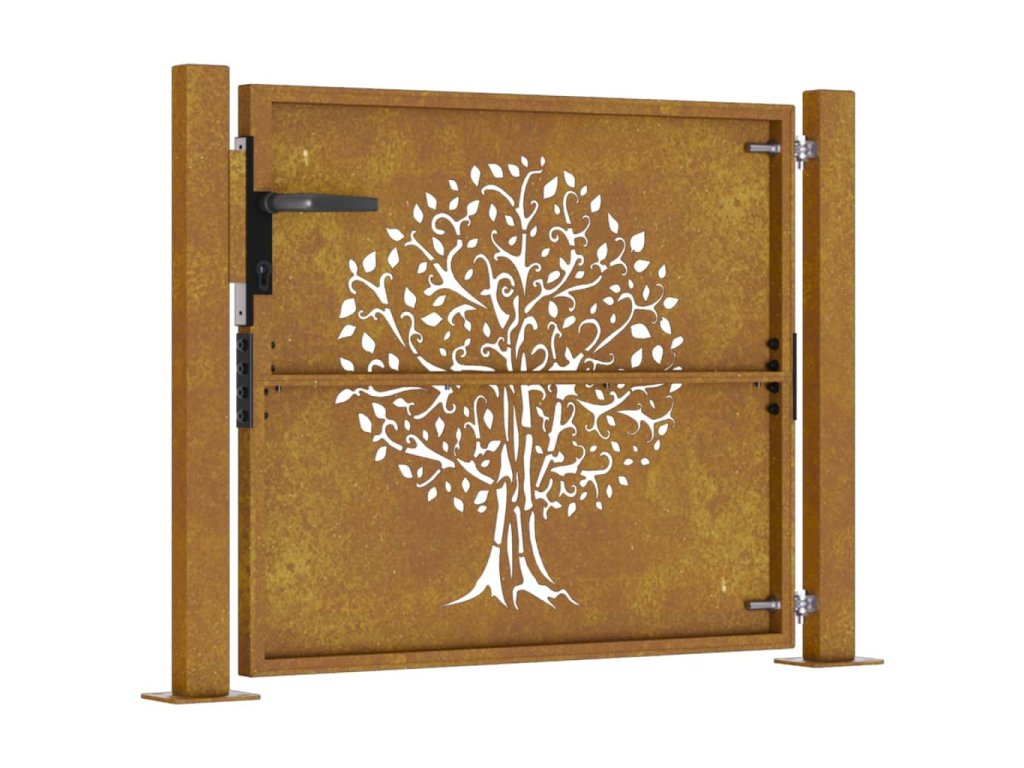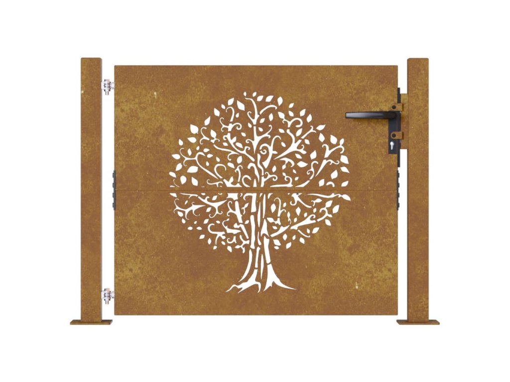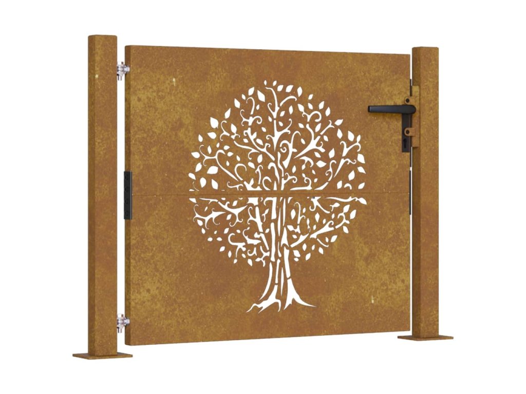 - Materiál s dlouhou životností: Kovová branka je vyrobená z cortenové oceli. Cortenová ocel, také známá jako povětrnostně odolná ocel. Je ze své podstaty antikorozní. Při prvním vystavení atmosférickým podmínkám se na ní vytvoří rezavá ochranná vrstva proti korozi. Nemusíte ji tedy natírat. Tím ušetříte náklady na údržbu a opravy. Výrazný hnědý odstín cortenové oceli jistě upoutá pozornost. Povětrnostně odolná ocel je výjimečně odolná a obstojí ve zkoušce času.