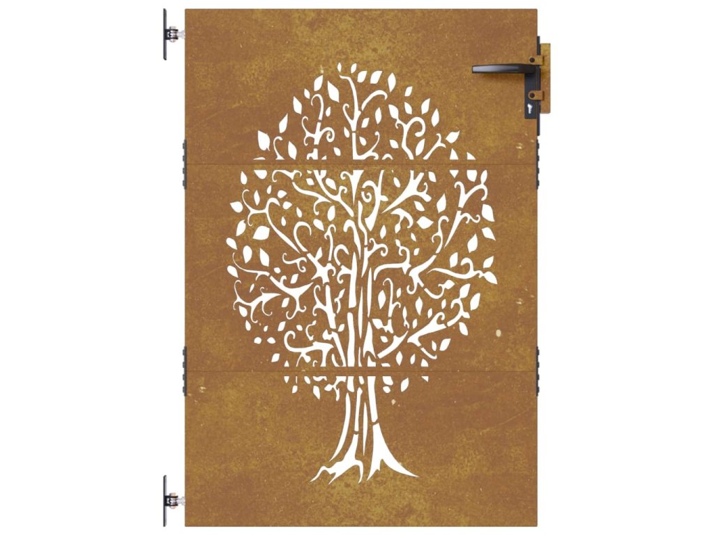 - Materiál s dlouhou životností: Kovová branka je vyrobená z cortenové oceli. Cortenová ocel, také známá jako povětrnostně odolná ocel. Je ze své podstaty antikorozní. Při prvním vystavení atmosférickým podmínkám se na ní vytvoří rezavá ochranná vrstva proti korozi. Nemusíte ji tedy natírat. Tím ušetříte náklady na údržbu a opravy. Výrazný hnědý odstín cortenové oceli jistě upoutá pozornost. Povětrnostně odolná ocel je výjimečně odolná a obstojí ve zkoušce času.