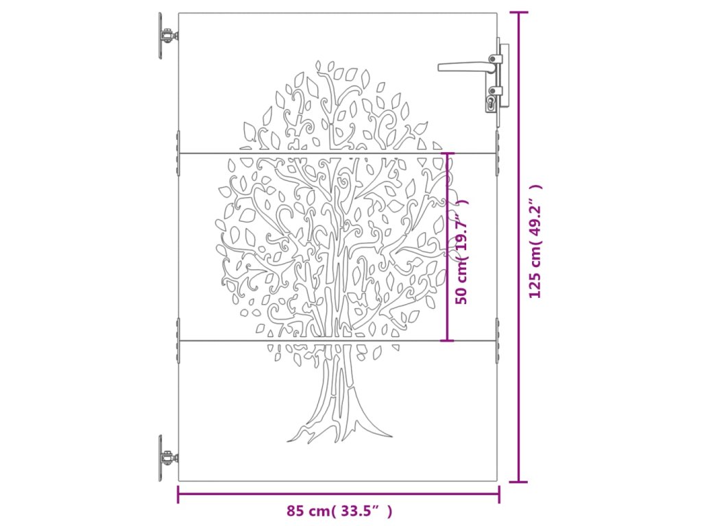 - Materiál s dlouhou životností: Kovová branka je vyrobená z cortenové oceli. Cortenová ocel, také známá jako povětrnostně odolná ocel. Je ze své podstaty antikorozní. Při prvním vystavení atmosférickým podmínkám se na ní vytvoří rezavá ochranná vrstva proti korozi. Nemusíte ji tedy natírat. Tím ušetříte náklady na údržbu a opravy. Výrazný hnědý odstín cortenové oceli jistě upoutá pozornost. Povětrnostně odolná ocel je výjimečně odolná a obstojí ve zkoušce času.