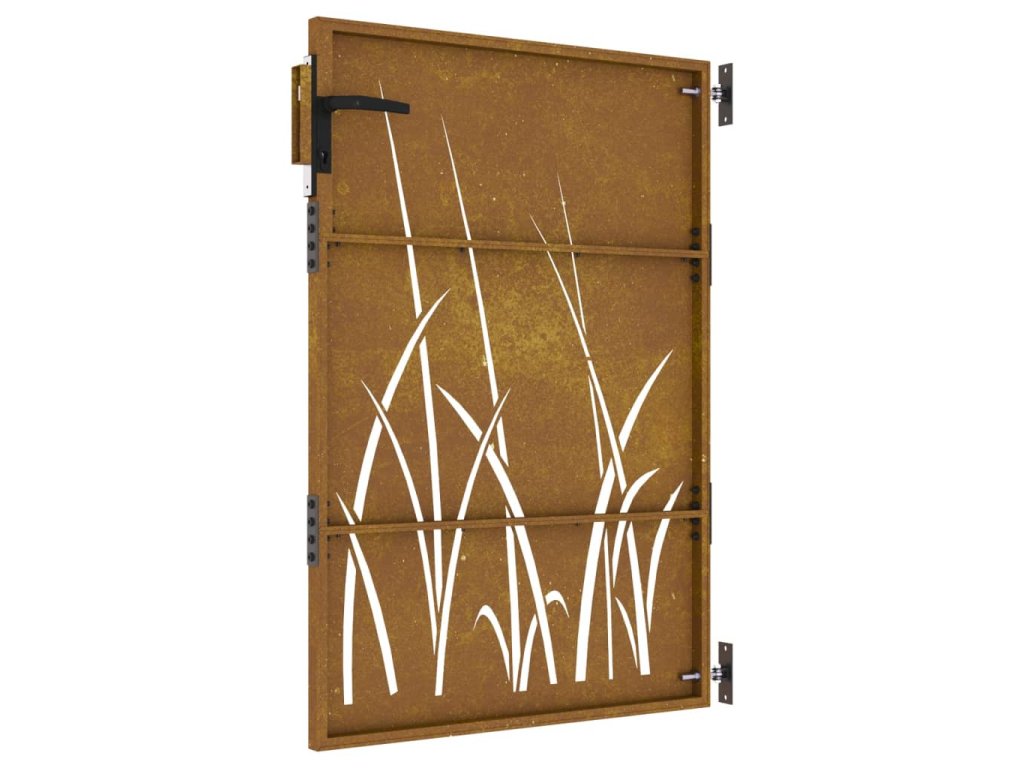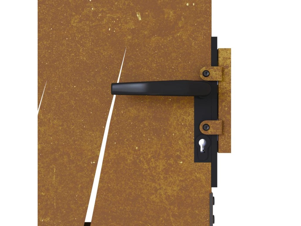- Materiál s dlouhou životností: Kovová branka je vyrobená z cortenové oceli. Cortenová ocel, také známá jako povětrnostně odolná ocel. Je ze své podstaty antikorozní. Při prvním vystavení atmosférickým podmínkám se na ní vytvoří rezavá ochranná vrstva proti korozi. Nemusíte ji tedy natírat. Tím ušetříte náklady na údržbu a opravy. Výrazný hnědý odstín cortenové oceli jistě upoutá pozornost. Povětrnostně odolná ocel je výjimečně odolná a obstojí ve zkoušce času.
