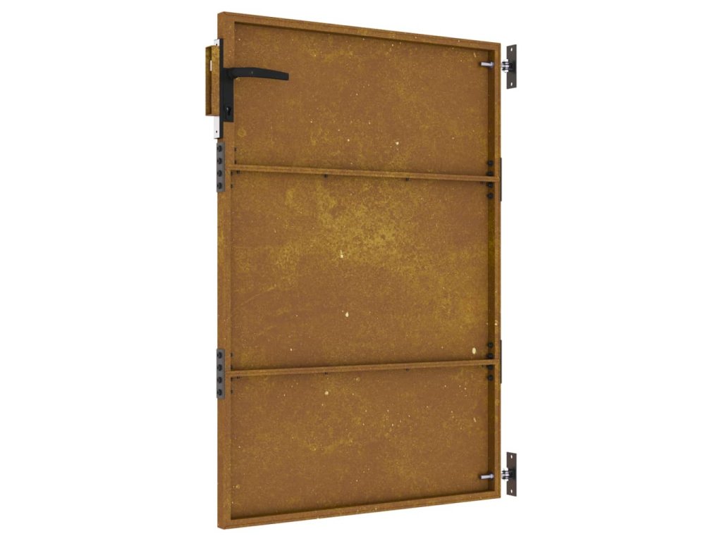 - Materiál s dlouhou životností: Kovová branka je vyrobená z cortenové oceli. Cortenová ocel, také známá jako povětrnostně odolná ocel. Je ze své podstaty antikorozní. Při prvním vystavení atmosférickým podmínkám se na ní vytvoří rezavá ochranná vrstva proti korozi. Nemusíte ji tedy natírat. Tím ušetříte náklady na údržbu a opravy. Výrazný hnědý odstín cortenové oceli jistě upoutá pozornost. Povětrnostně odolná ocel je výjimečně odolná a obstojí ve zkoušce času.