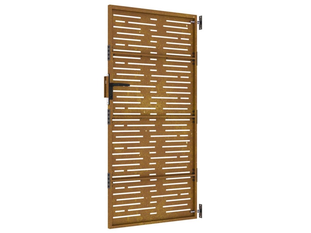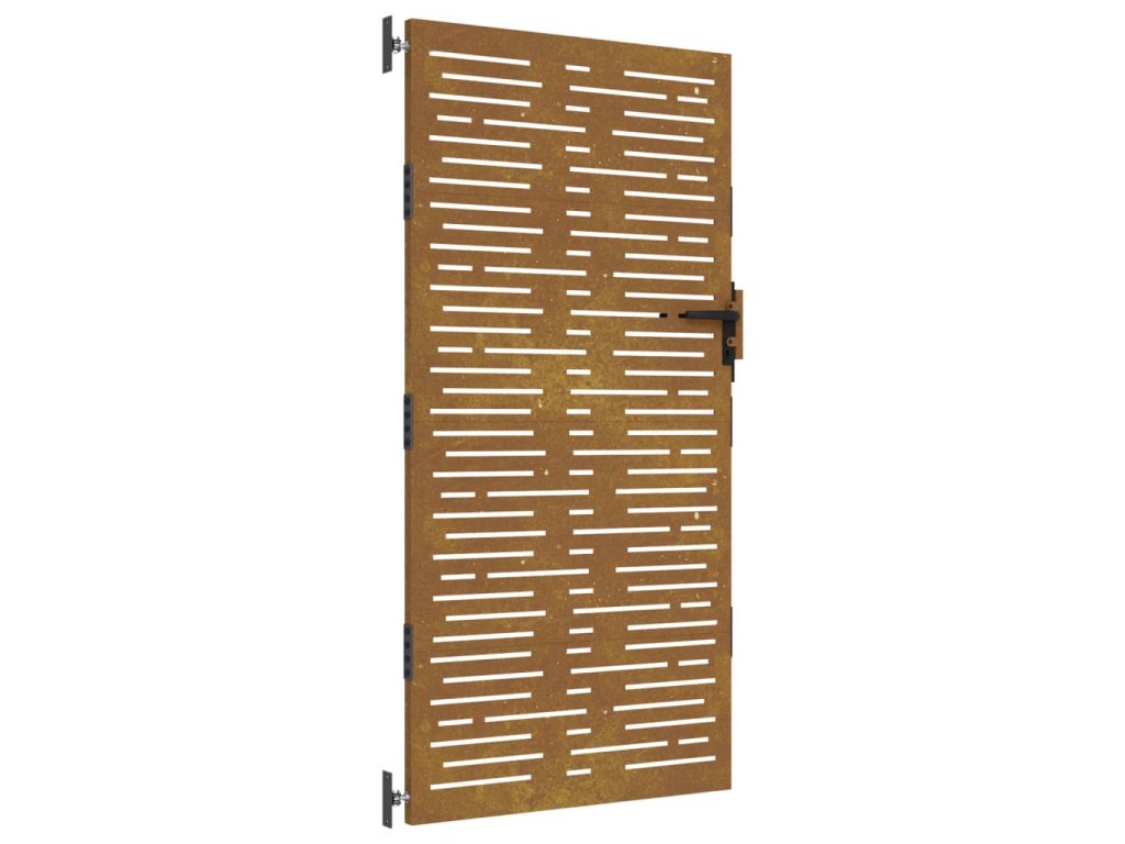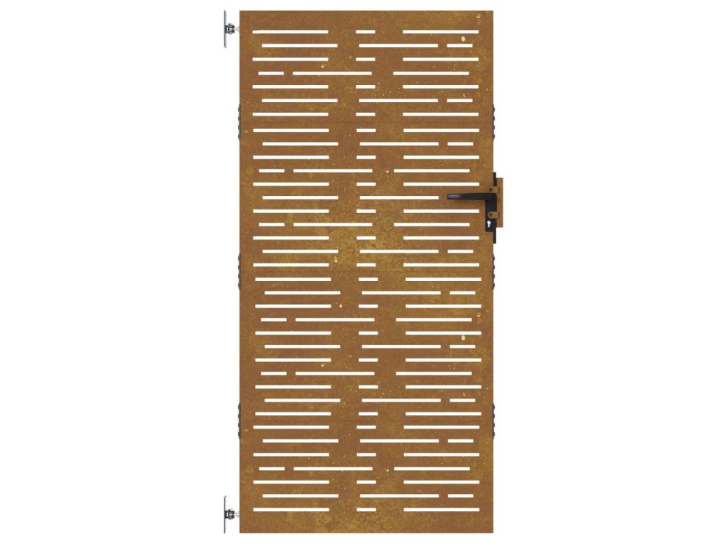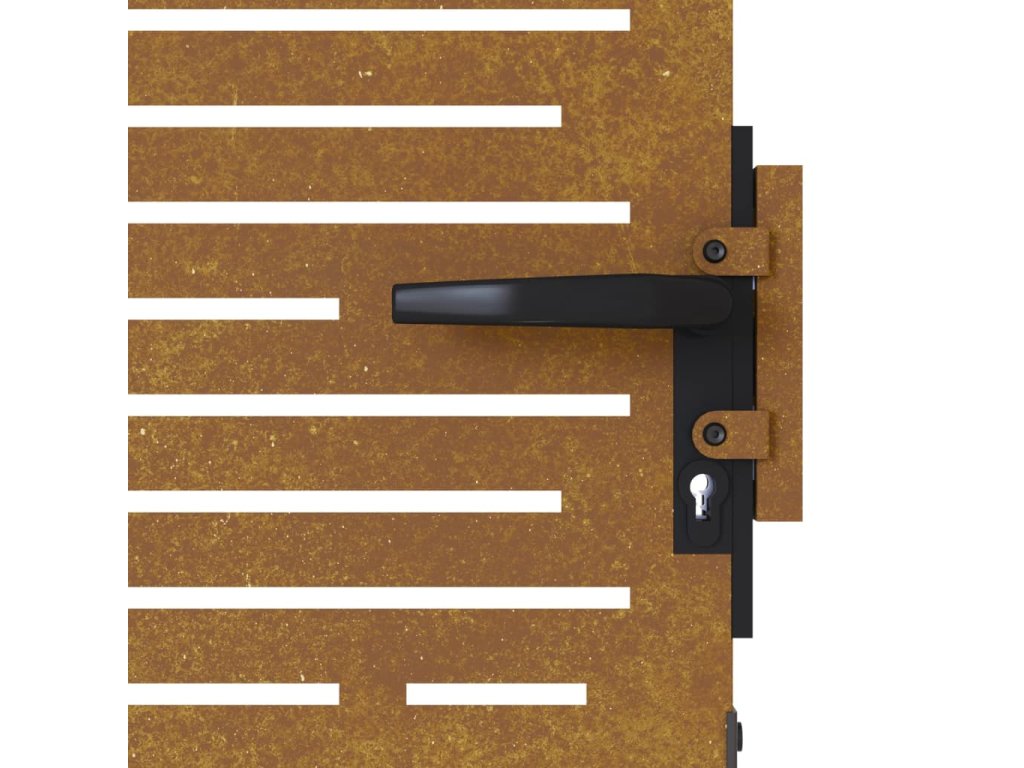 - Materiál s dlouhou životností: Kovová branka je vyrobená z cortenové oceli. Cortenová ocel, také známá jako povětrnostně odolná ocel. Je ze své podstaty antikorozní. Při prvním vystavení atmosférickým podmínkám se na ní vytvoří rezavá ochranná vrstva proti korozi. Nemusíte ji tedy natírat. Tím ušetříte náklady na údržbu a opravy. Výrazný hnědý odstín cortenové oceli jistě upoutá pozornost. Povětrnostně odolná ocel je výjimečně odolná a obstojí ve zkoušce času.