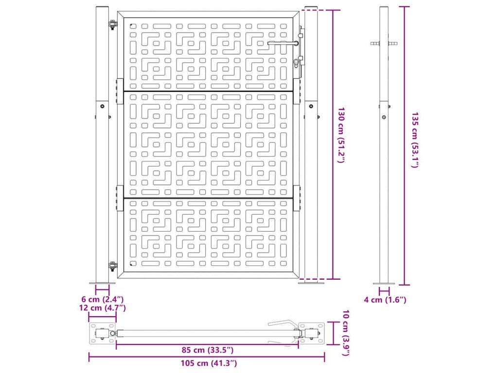 - Laserem vyřezávaný design: Bezpečnostní branka má krásný laserem vyřezávaný design, který dodá vašemu domovu jedinečný půvab.