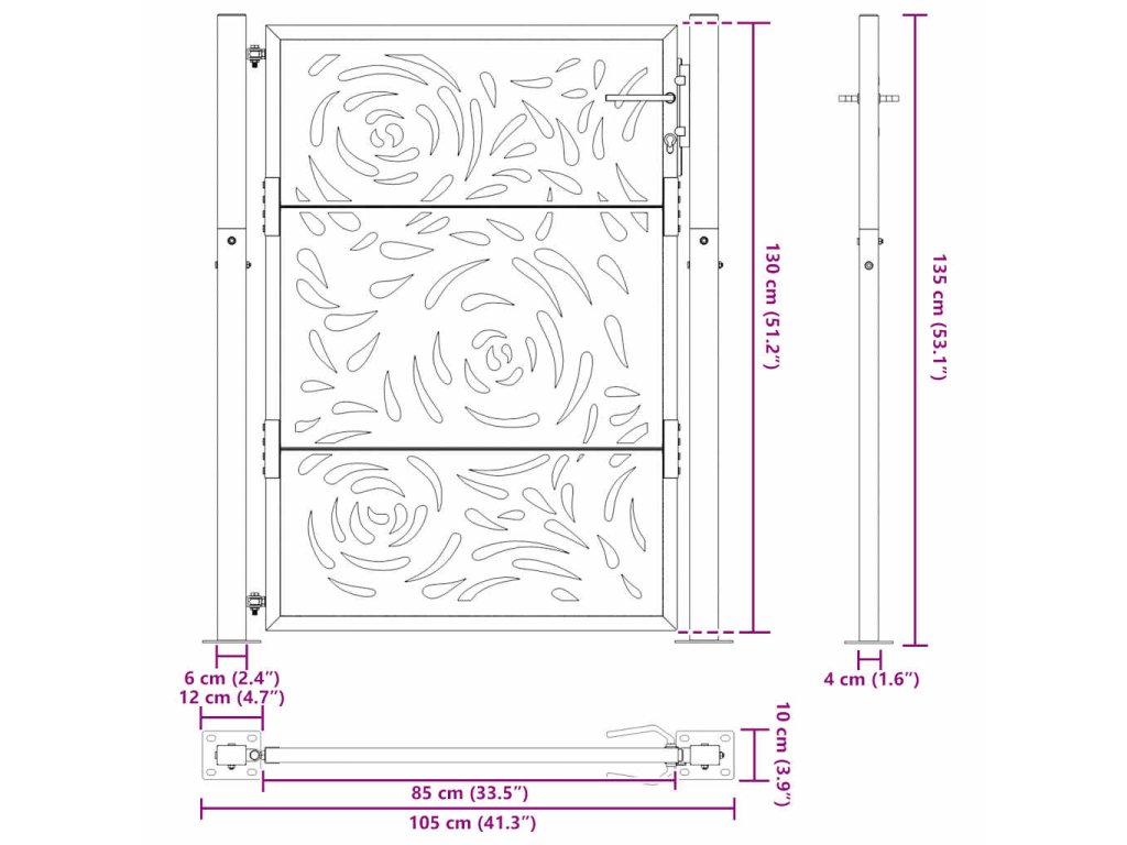 - Laserem vyřezávaný design: Bezpečnostní branka má krásný laserem vyřezávaný design, který dodá vašemu domovu jedinečný půvab.