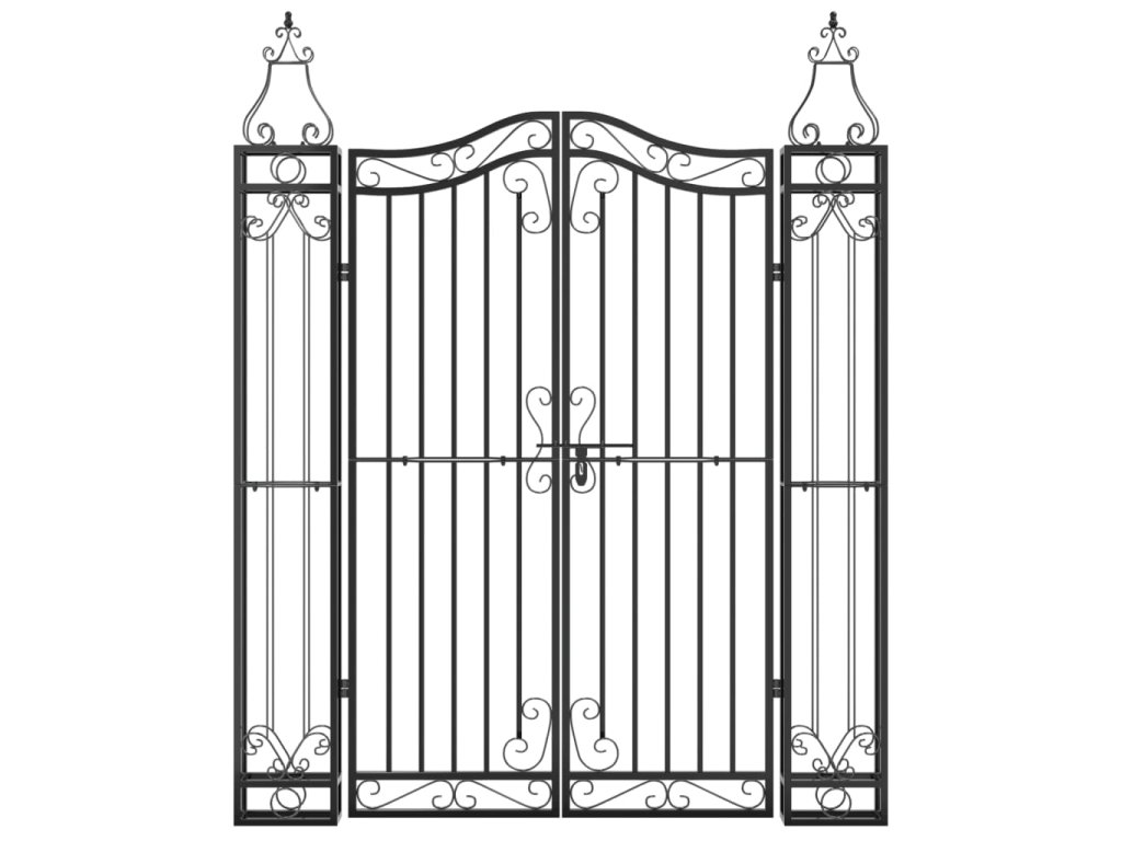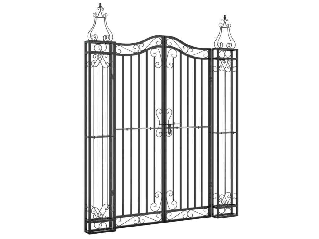 Tato okrasná zahradní branka s elegantními sloupky je ideálním vstupním prvkem pro oplocení vaší zahrady nebo terasy.