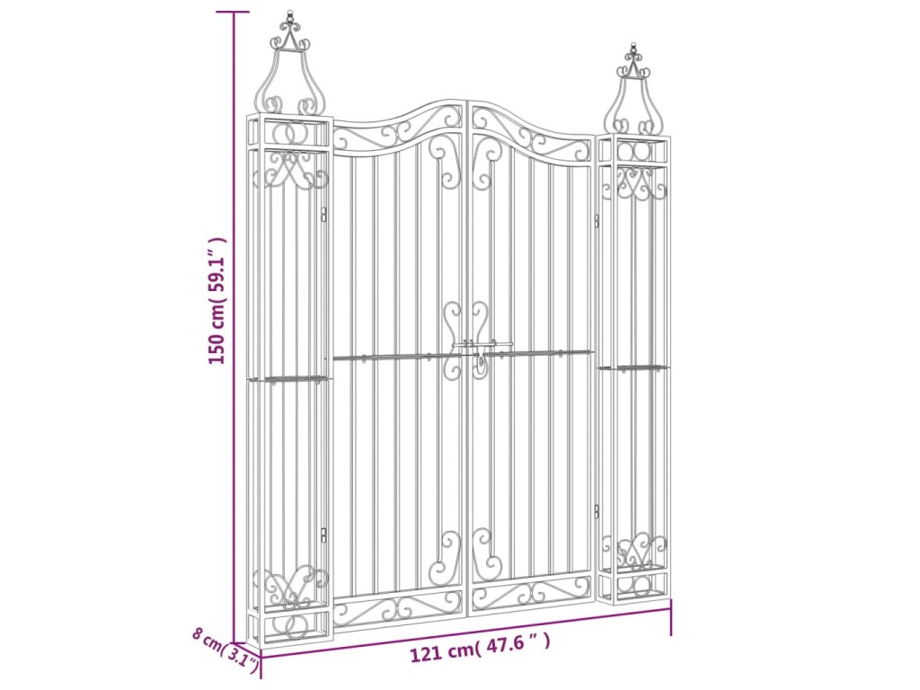 - Uzamykatelný systém: Brána z tepaného železa je vybavena šroubovým závěsem pro rychlé uzamčení a vyšší bezpečnost.