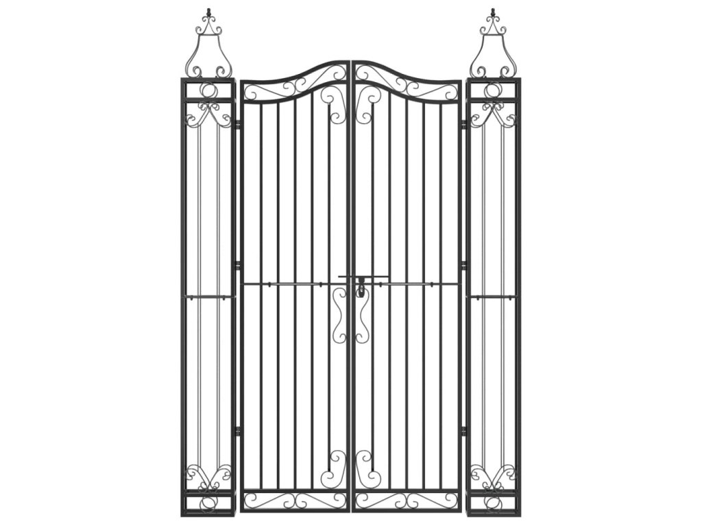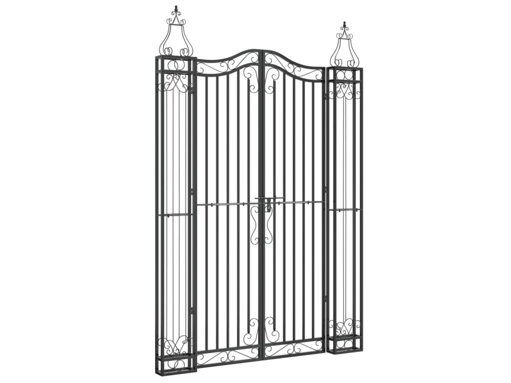- Uzamykatelný systém: Brána z tepaného železa je vybavena šroubovým závěsem pro rychlé uzamčení a vyšší bezpečnost.
