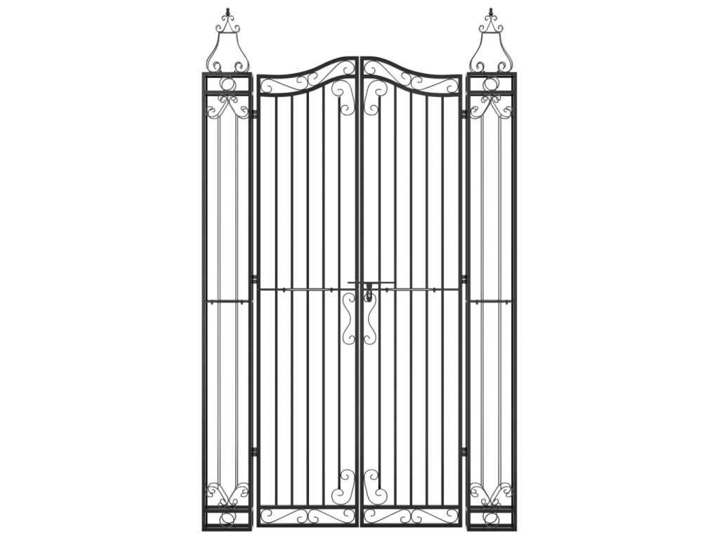 Tato okrasná zahradní branka s elegantními sloupky je ideálním vstupním prvkem pro oplocení vaší zahrady nebo terasy.