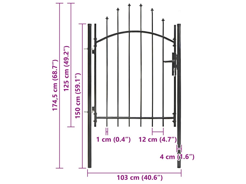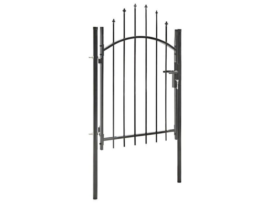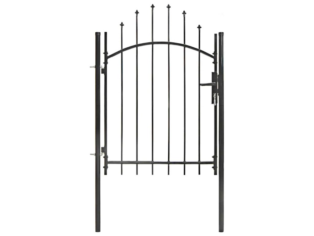 Elegantní zaoblený design naší branky je velmi atraktivní. Silné vodorovné příčky zpevňují její rám a zvyšují její bezpečnost. Naše branka tak tvoří nejen působivý vstup na váš pozemek, ale také spolehlivou bariéru. Je vyrobená z vysoce odolné oceli a ošetřená práškovým lakem, který ji chrání před rzí a korozí. Zahradní branka je rovněž vybavena zamykacím systémem. Dodáváme ji spolu se dvěma robustními sloupky s pevnými závěsy pro snadnou instalaci.