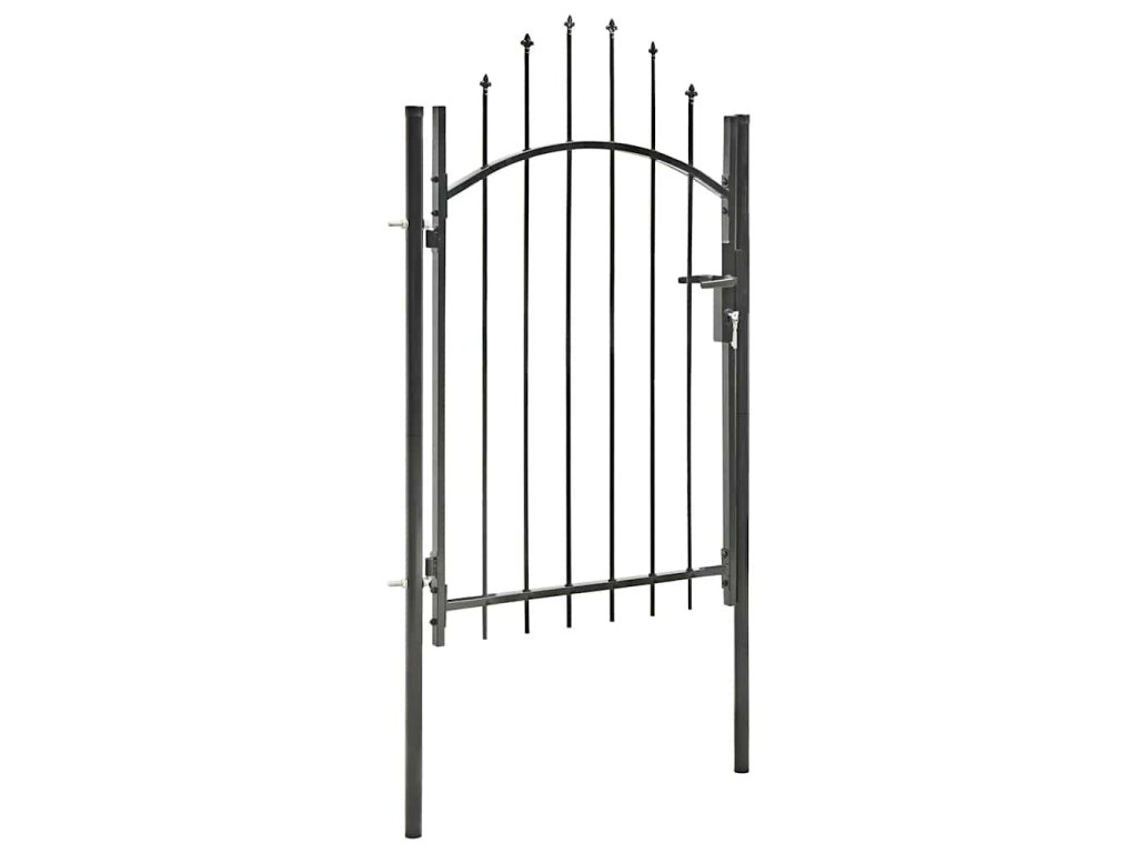 Elegantní zaoblený design naší branky je velmi atraktivní. Silné vodorovné příčky zpevňují její rám a zvyšují její bezpečnost. Naše branka tak tvoří nejen působivý vstup na váš pozemek, ale také spolehlivou bariéru. Je vyrobená z vysoce odolné oceli a ošetřená práškovým lakem, který ji chrání před rzí a korozí. Zahradní branka je rovněž vybavena zamykacím systémem. Dodáváme ji spolu se dvěma robustními sloupky s pevnými závěsy pro snadnou instalaci.