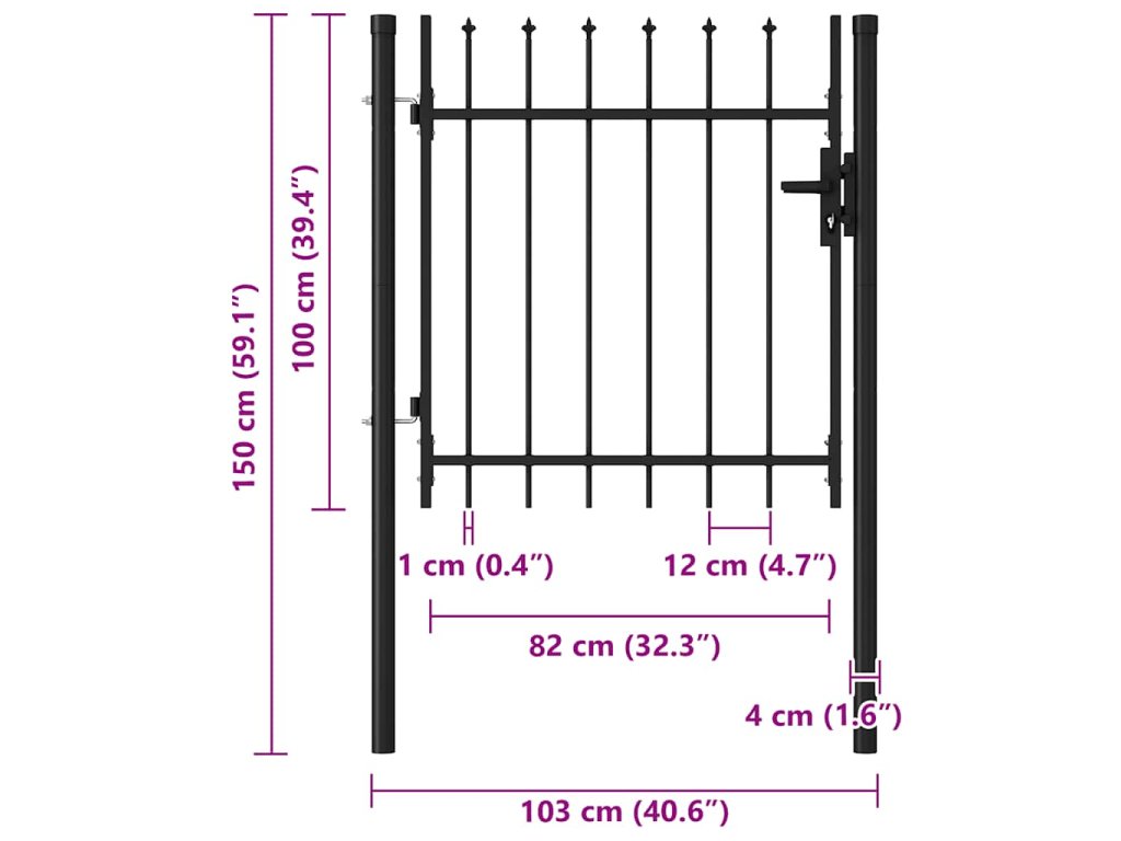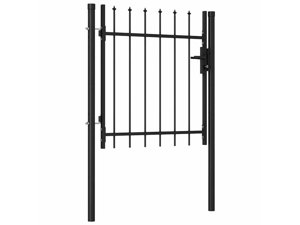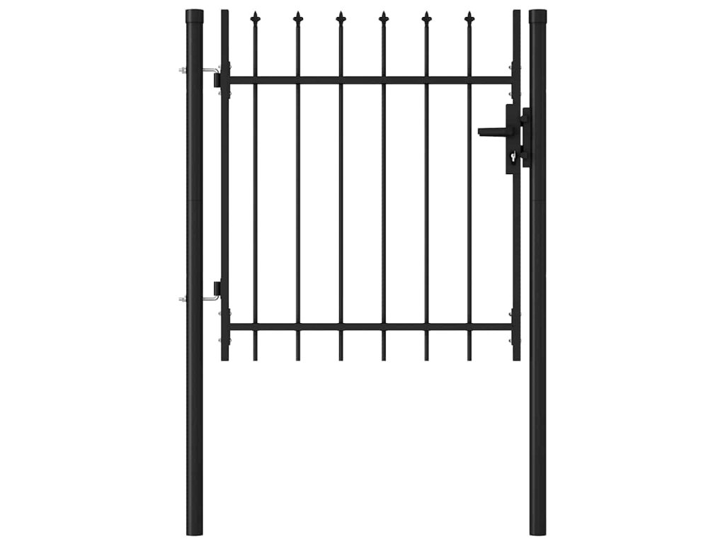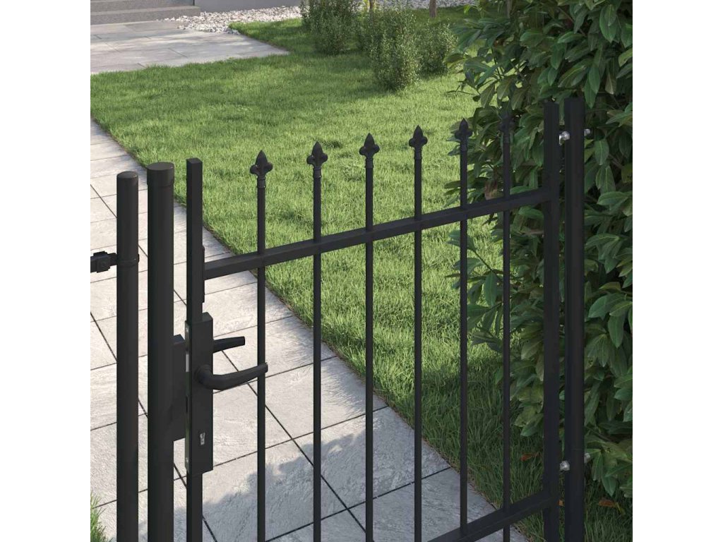 Zahradní bránu tvoří svislé pruty nahoře zakončené hroty a pevné vodorovné výztuhy, které rám zpevňují. Brána zaručuje vysoký stupeň soukromí a bezpečnosti a zároveň vytváří atraktivní vstup na váš pozemek. Je vyrobená z vysoce odolné oceli ošetřené práškovým lakem, který bránu chrání před rezavěním a korozí.