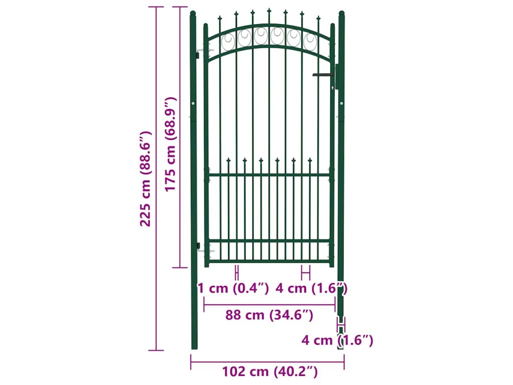 Plotová branka je vyrobená z vysoce odolné oceli, má robustní konstrukci s práškovým nástřikem proti rzi a korozi. Zahradní branka je vybavená vertikálním pruty zakončenými hroty a silnou vodorovnou výztuží, takže vám poskytne vysoký stupeň zabezpečení. Klenutý design jí dodává na eleganci. Součástí balení jsou dva pevné sloupky s robustními závěsy pro snadnou instalaci a také zámek se třemi klíči.