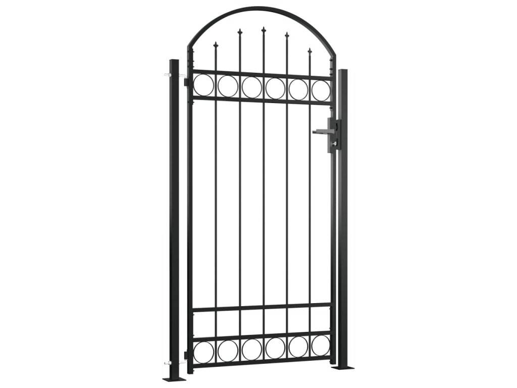 Branka má elegantní design s dekorativním obloukem ve své horní části a její silné horizontální příčky zpevňují rám. Branka vytváří krásný a zároveň bezpečný vstup na váš pozemek. Je vyrobená z vysoce odolné oceli a opatřená práškovým nástřikem proti rzi a korozi.