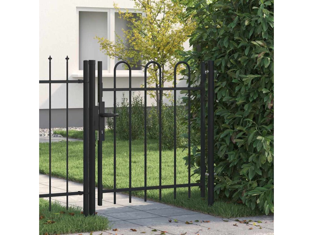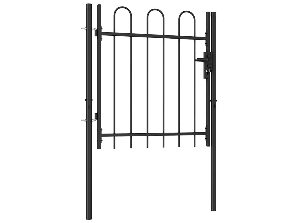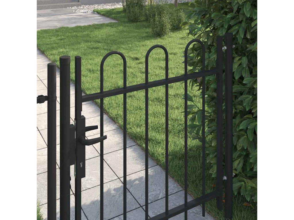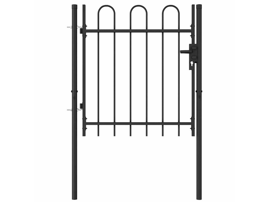 Zahradní branku tvoří svislé pruty nahoře zakončené obloukem a pevné vodorovné výztuhy, které rám zpevňují. Brána zaručuje vysoký stupeň soukromí a bezpečnosti a zároveň vytváří atraktivní vstup na váš pozemek. Je vyrobená z vysoce odolné oceli ošetřené práškovým lakem, který bránu chrání před rezavěním a korozí.