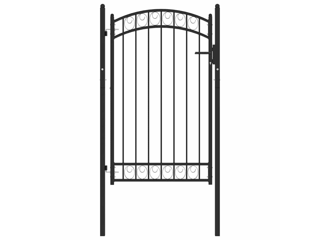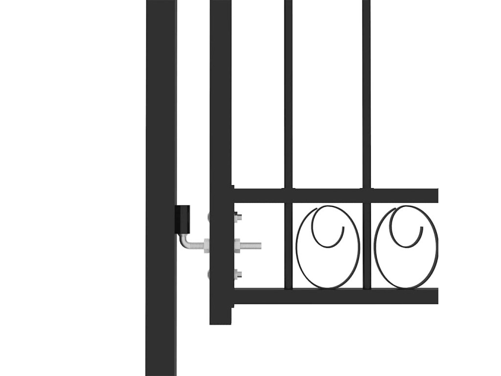 Elegantní zaoblený design naší branky je velmi atraktivní. Silné vodorovné příčky zpevňují její rám a zvyšují její bezpečnost. Branka tak tvoří působivý vstup na váš pozemek. Je vyrobená z vysoce odolné oceli a ošetřená práškovým lakem, který ji chrání před rzí a korozí. Zahradní branka je rovněž vybavena zamykacím systémem se třemi zahrnutými klíči. Dodáváme ji spolu se dvěma robustními sloupky s pevnými závěsy pro snadnou instalaci.