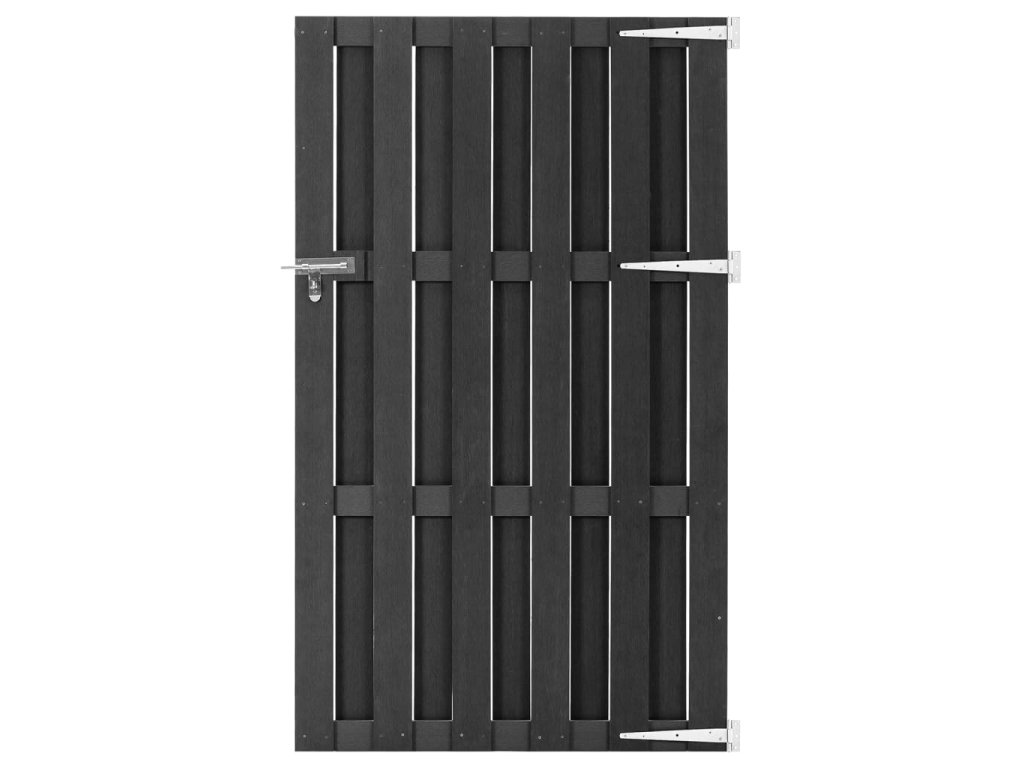 Tato zahradní branka je vyrobená z WPC, které má dlouhou životnost. Pro větší bezpečnost je možné ji uzamknout na západku. Branka, vyrobená z příčných a těsně spolu sousedících svislých latěk, je robustní, stabilní a má dlouhou životnost. Můžete ji s důvěrou použít jako bariéru v oplocení vašeho pozemku či zahrady, a získat tak více soukromí a bezpečí.
