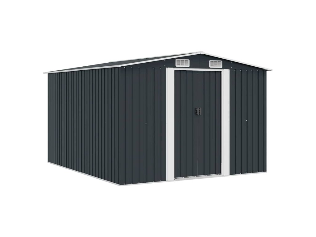 Tento úložný přístřešek má větrací otvory v přední i zadní části, které zajišťují vynikající ventilaci. Dvojité posuvné dveře v přední části umožňují snadný vstup a výstup. Konstrukce z pozinkované oceli spolu s práškovým nástřikem zaručují pevnost a odolnost kůlny na nářadí.