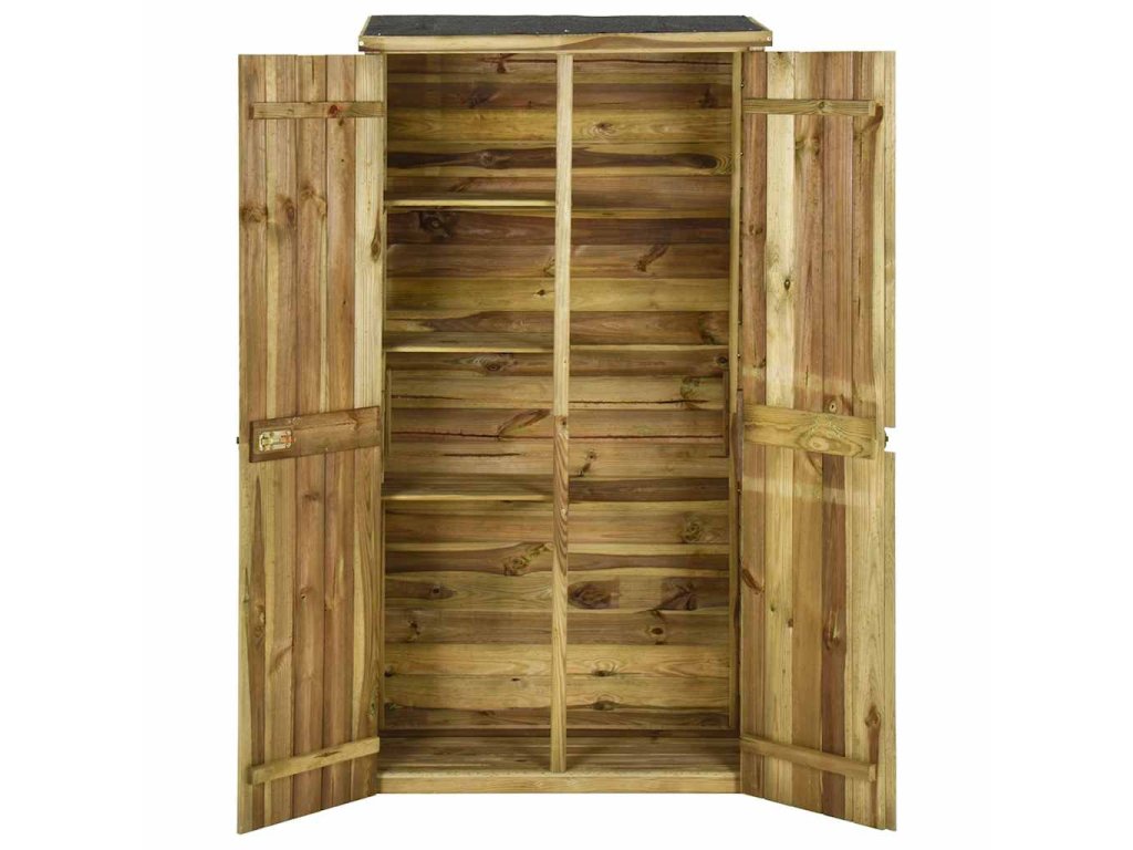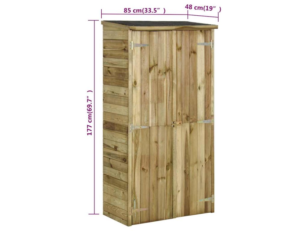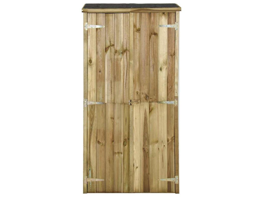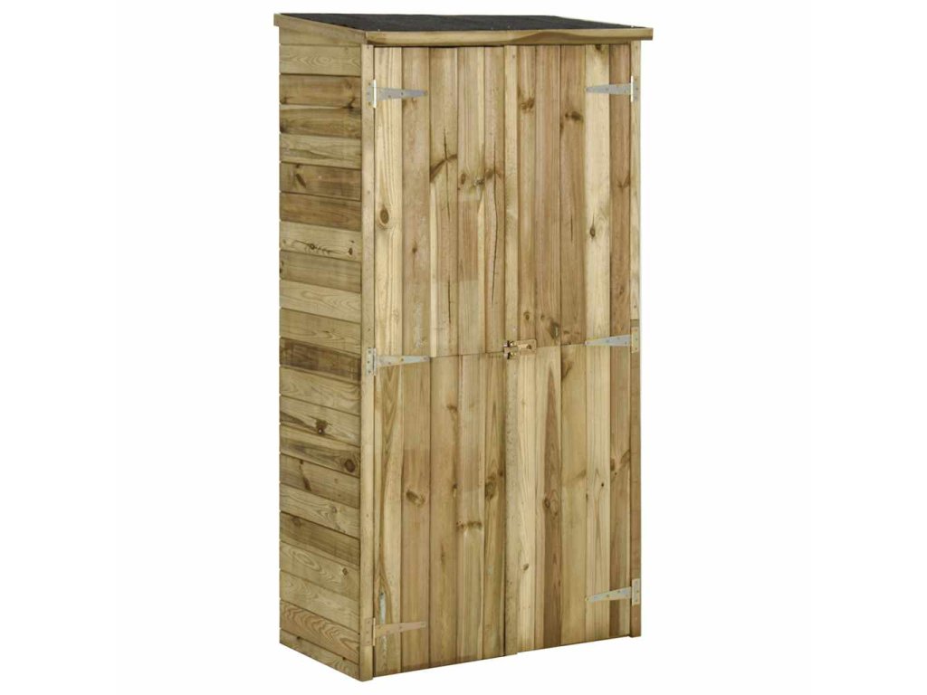 Tato venkovní úložná skříň je vyrobena z borového dřeva. Impregnované borové dřevo je odolné proti opotřebení, povětrnostním vlivům a hnilobě. Střecha je navíc pokryta voděodolným dehtovým papírem.