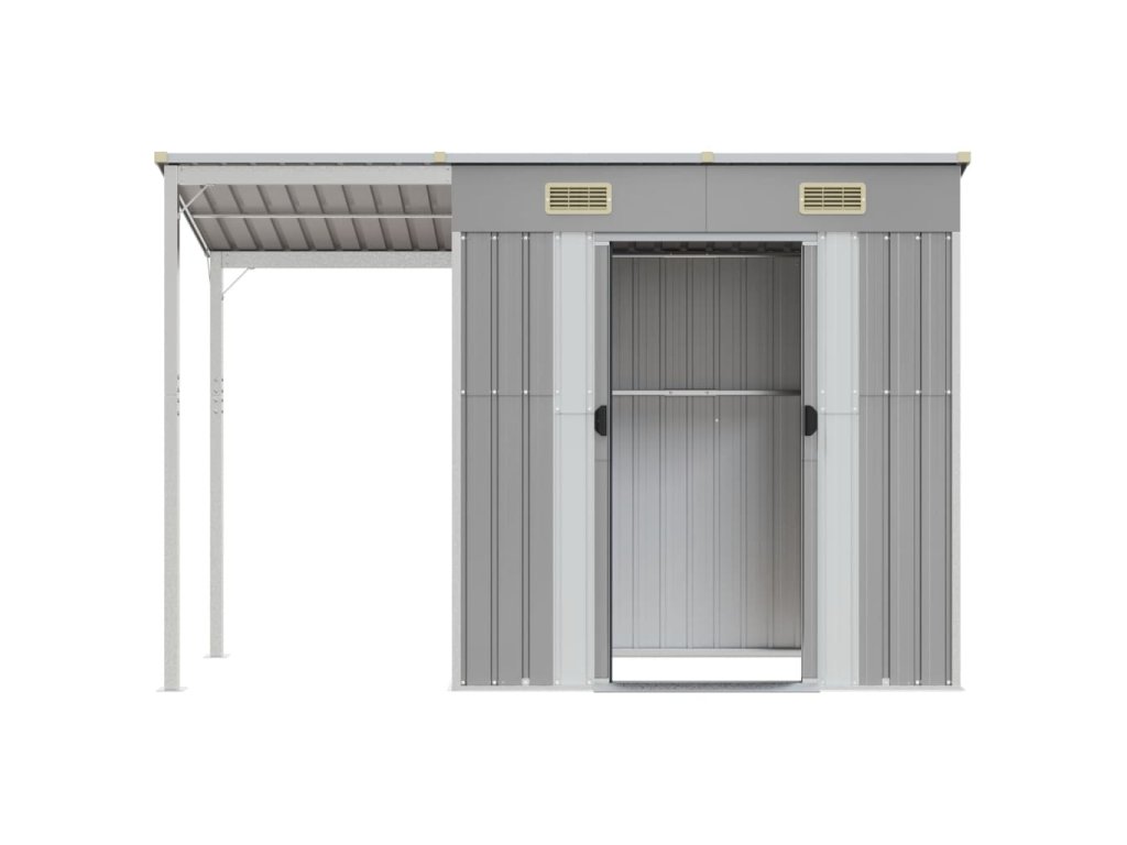 vidaXL Zahradní domek s prodlouženou střechou světle šedý 277 x 107 x 181 cm ocelový