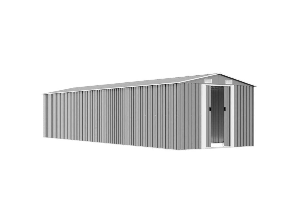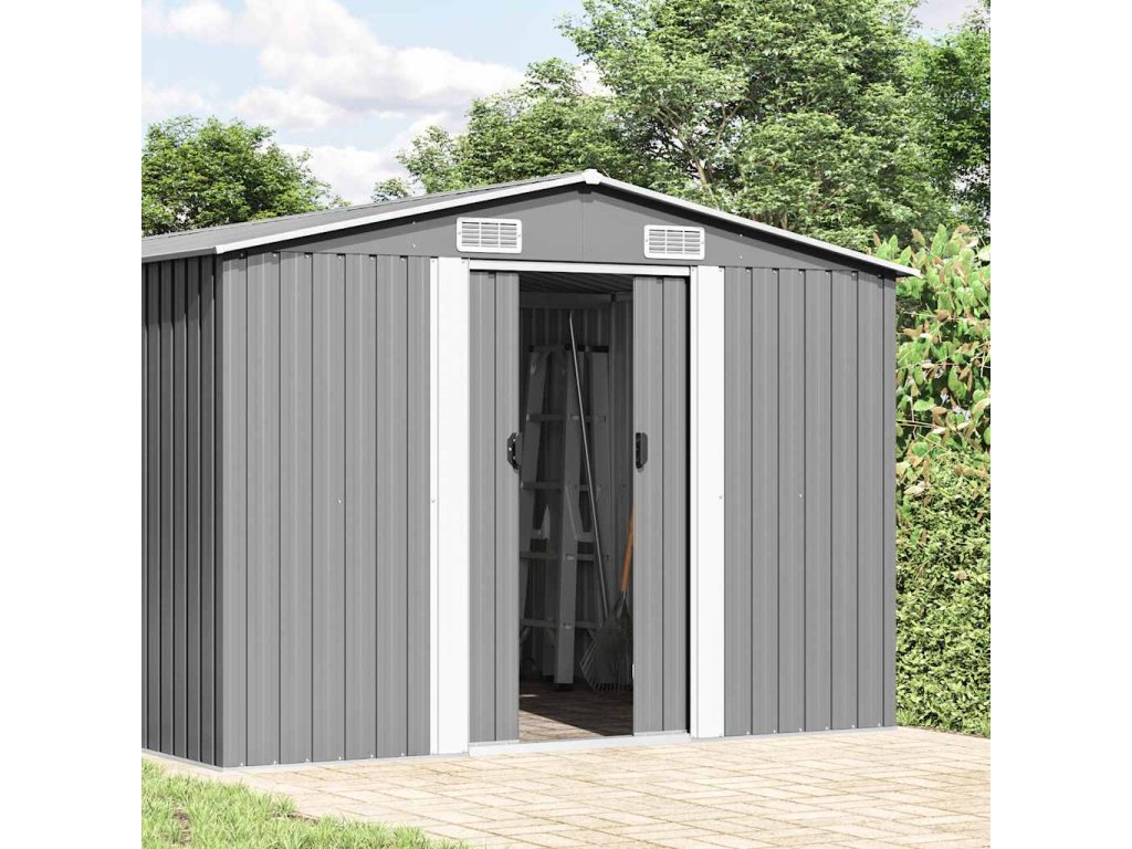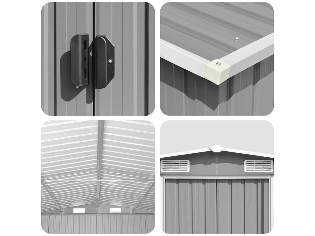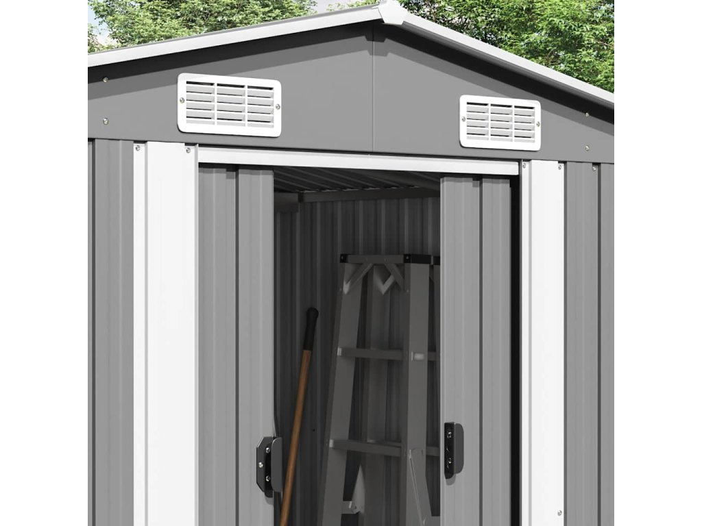Zahradní domek disponuje větracími otvory, které zajišťují vynikající ventilaci. Dvojité posuvné dveře umožňují snadný vstup i výstup. Konstrukce z pozinkované oceli je odolná a pevná, takže kůlna nepodléhá korozi ani jiným vlivům extrémních povětrnostních podmínek.