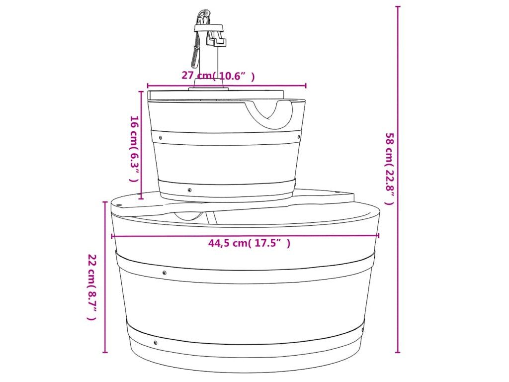 Tato dřevěná fontána je vynikajícím doplňkem na dvorek, terasu a zahradu, který z vašeho domova vytvoří jedinečnou krajinu.