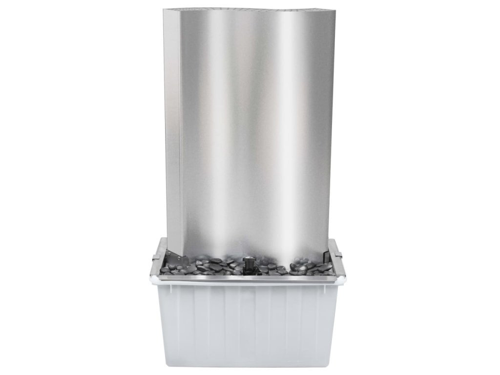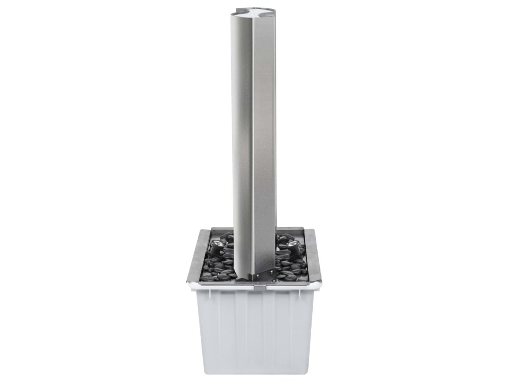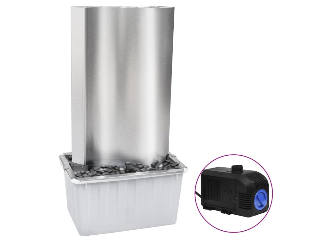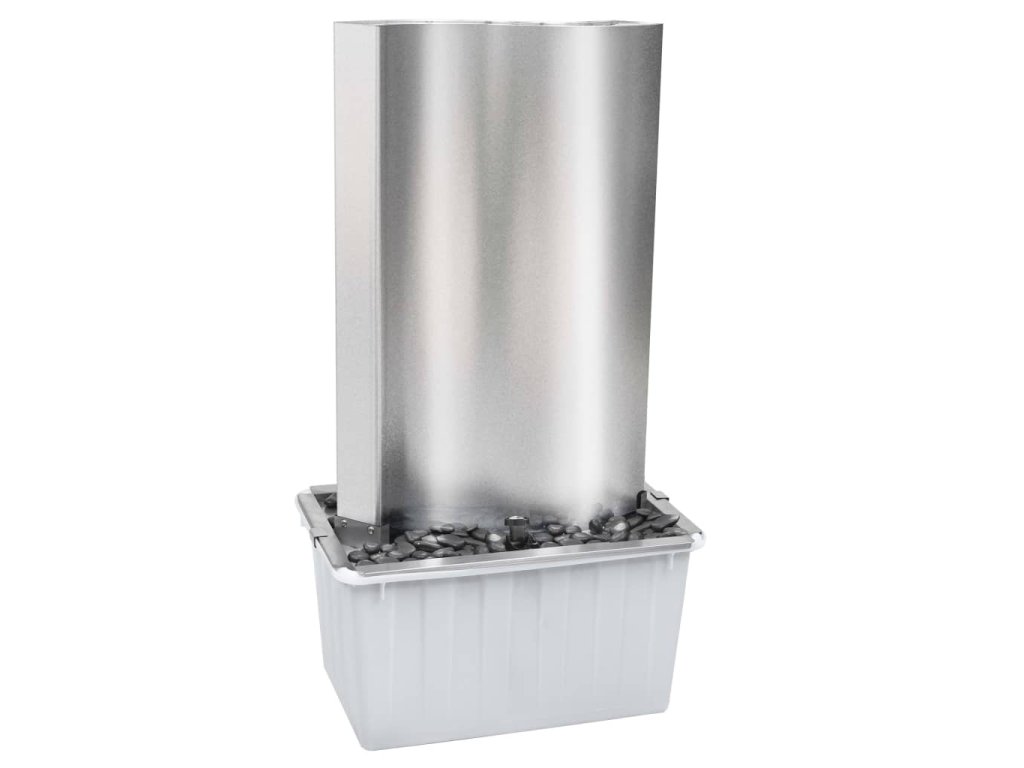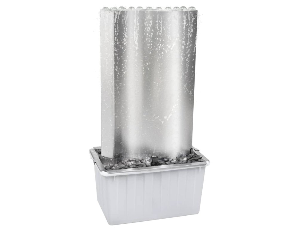 Zahradní fontána je navržená tak, aby zaručovala konstantní a rovnoměrný tok vody. Dodává se s plastovou základnou, kterou lze zakopat do země pro lepší efekt. Nerezové dno, instalované na horní části základny, je ozdobené oblázky (součástí balení). Vodopád je dodávaný s veškerým potřebným příslušenstvím pro připojení k vodnímu čerpadlu. Vodní prvek je vyrobený z vysoce kvalitní nerezové oceli 304, takže je odolný vůči chloru a má velmi dlouhou životnost. Tento produkt je třeba sestavit.