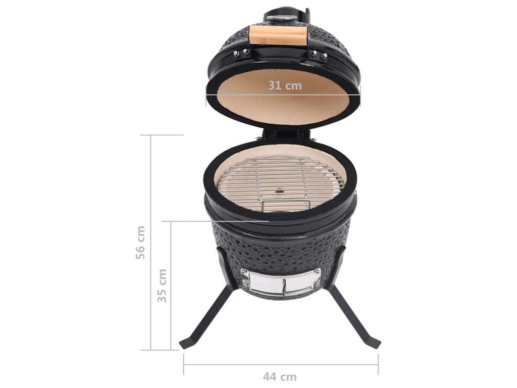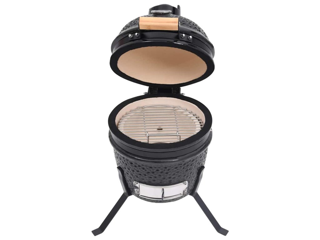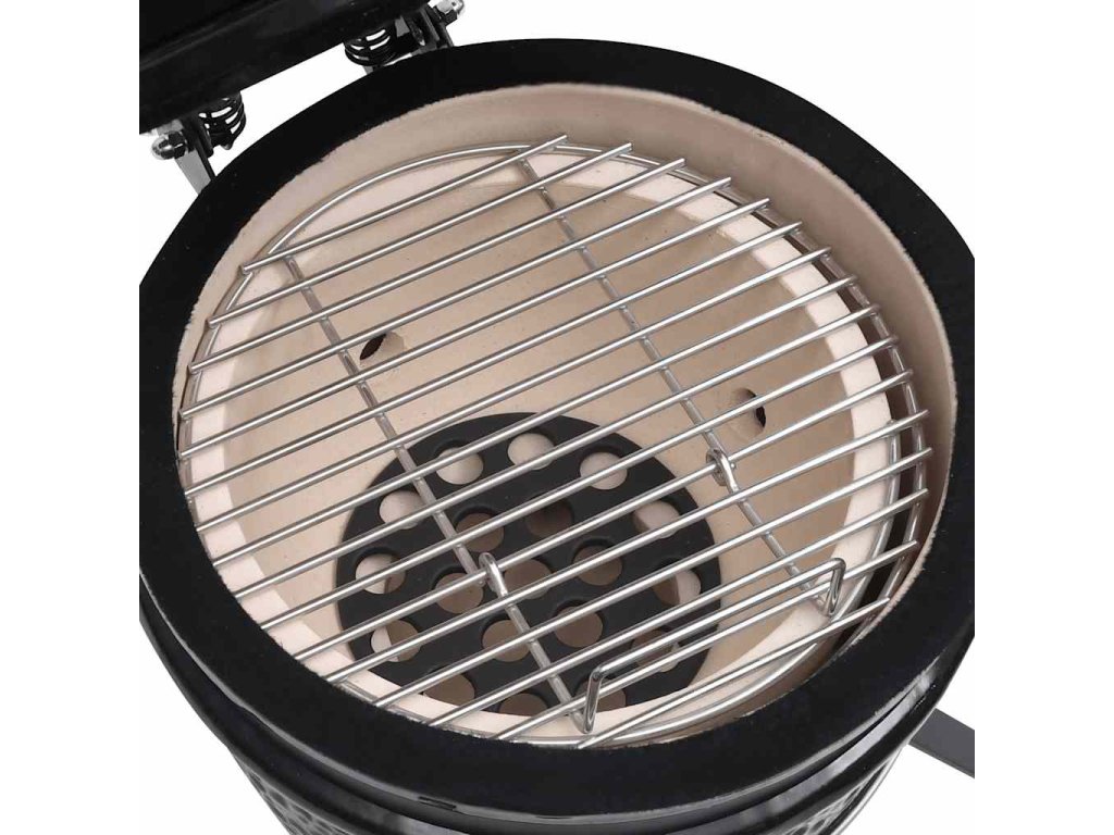 V tomto keramickém grilu Kamado můžete používat jak dřevěné uhlí, tak dřevo. Je vybavený širokou grilovací mřížkou o průměru 26,5 cm. Mini Kamado je skvělý pro grilování, pečení, uzení, vaření nebo jen ohřívání vašich pokrmů.