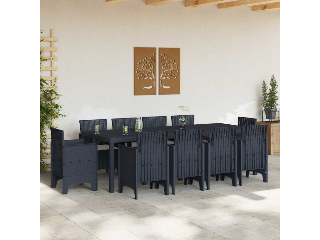 - Univerzální venkovní využití Perfektní pro zahrady a terasy, tento set se skvěle přizpůsobí různým venkovním kontextům. Jeho elegantní design vylepšuje jakýkoli prostor, což ho činí vhodným pro stolování, socializaci a oslavu výjimečných příležitostí. Bez problémů přecházející od běžného denního jídla po útulné večerní sezení, slouží jako středobod jakéhokoli shromáždění.