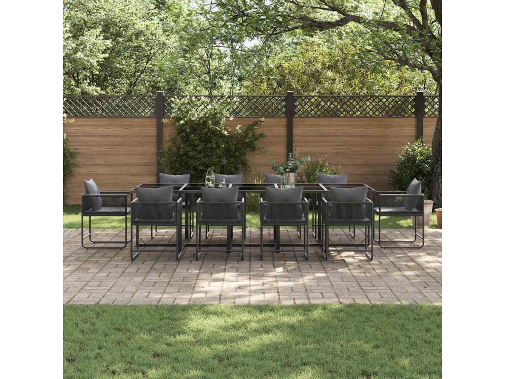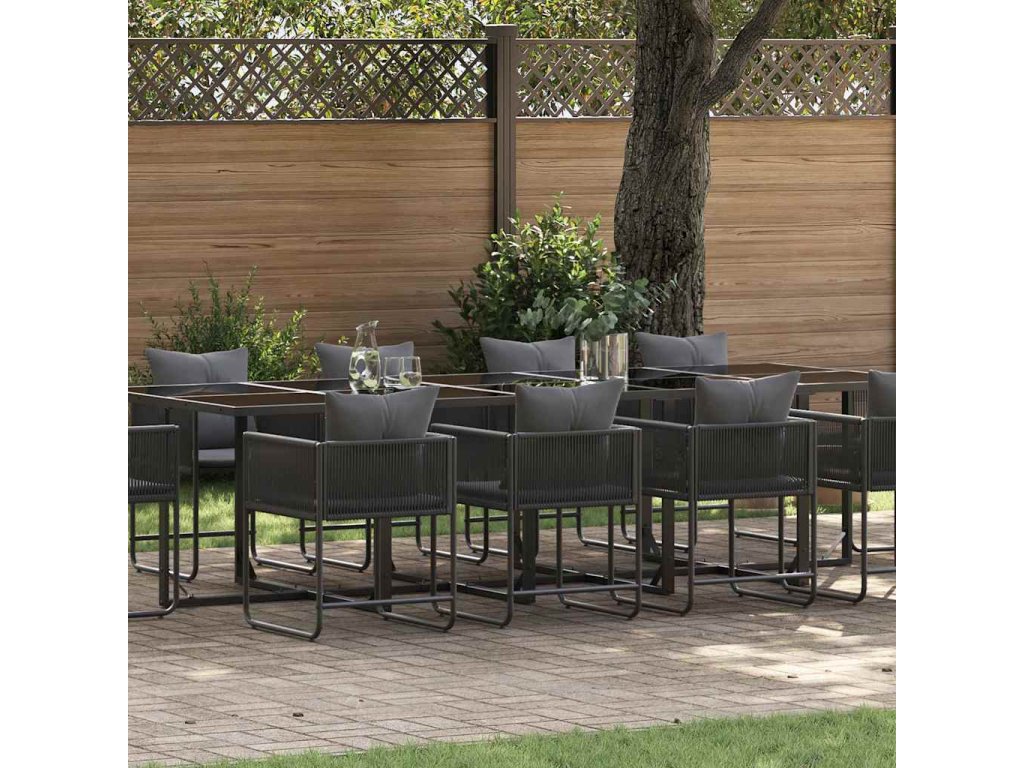 Tento zahradní jídelní set snoubí moderní styl s praktičností a nabízí snadnou montáž pro venkovní prostory. S minimalistickým vzhledem se skvěle hodí do moderních zahrad a na terasy. Kombinace odolných a elegantních materiálů je ideální pro každodenní použití a společenská setkání. Jeho design se krásně hodí do přírodního prostředí a poskytuje stylový prvek pro jídlo pod otevřeným nebem.