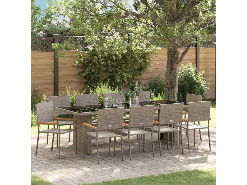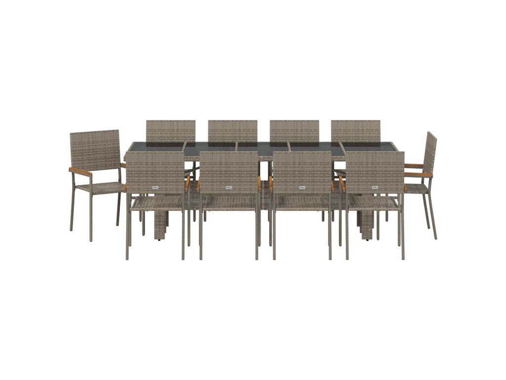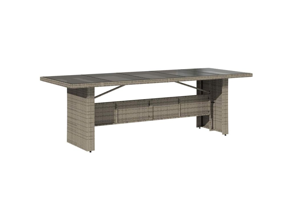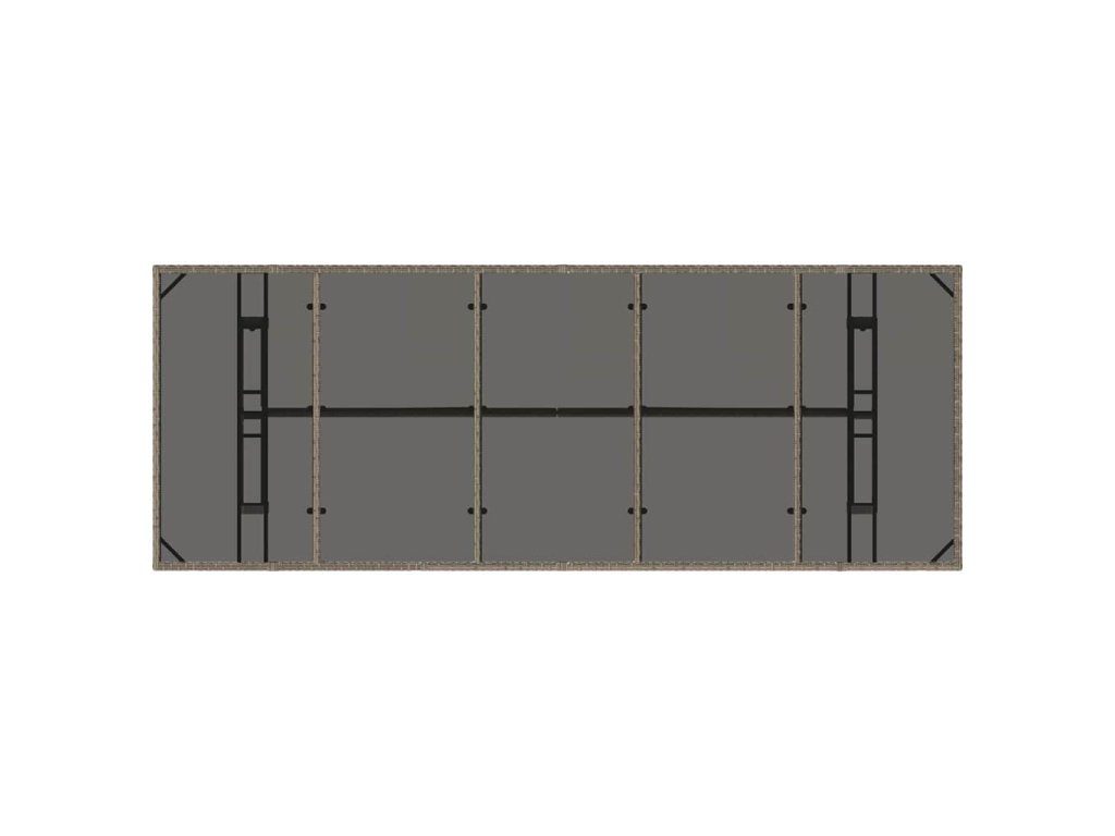 Tato moderní venkovní sada nábytku je parádní mix stylu a funkce, což z ní dělá super volbu pro zahrady a terasy, kde si chceš užívat venkovního stolování nebo jen tak relaxovat. Elegantní obdélníkový tvar dodává moderní atmosféru, je jednoduchý a praktický, žádné zbytečnosti. Nabízí dostatek místa na sezení, ideální pro letní večírky nebo pohodové rodinné chillování. Představ si, jak si užíváš čas na terase, povídáš si s kamarády, obklopený odolným polyratanem a hladkými liniemi, co vyzařují pohodlí a styl.