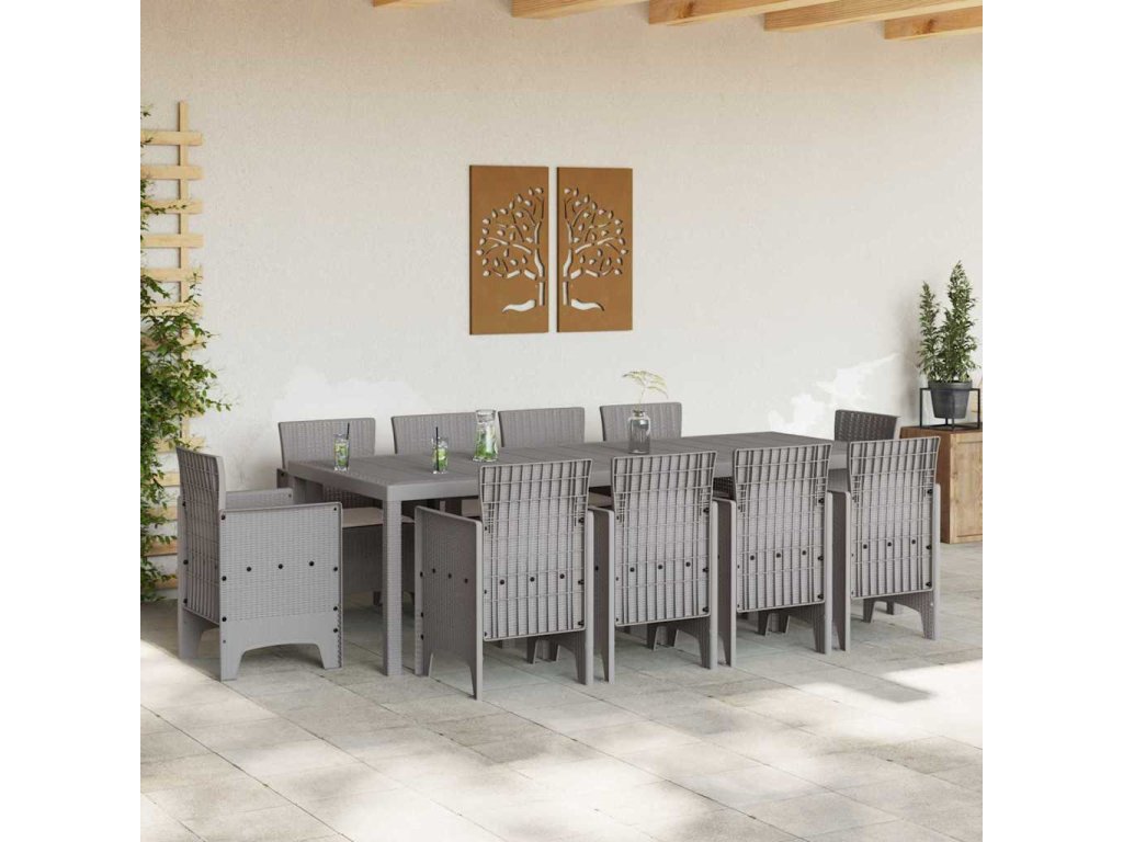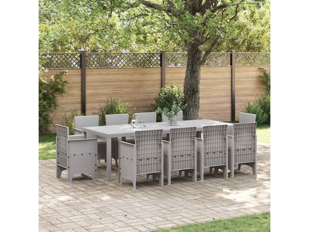 - Moderní poly ratanová konstrukce Jídelní set je vyroben z UV-odolného poly ratanu, který kombinuje eleganci s trvanlivostí. Jeho textura a matný povrch dodávají sofistikovaný, ale decentní vzhled, což ho činí vhodným pro různé venkovní prostředí, od teras po zahrady. Tato volba materiálu zajišťuje odolnost proti tvrdým slunečním paprskům, přičemž nabízí styl na dlouhou dobu.