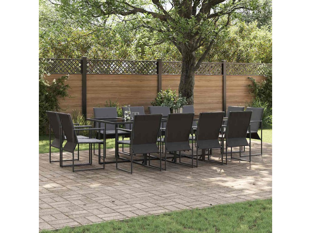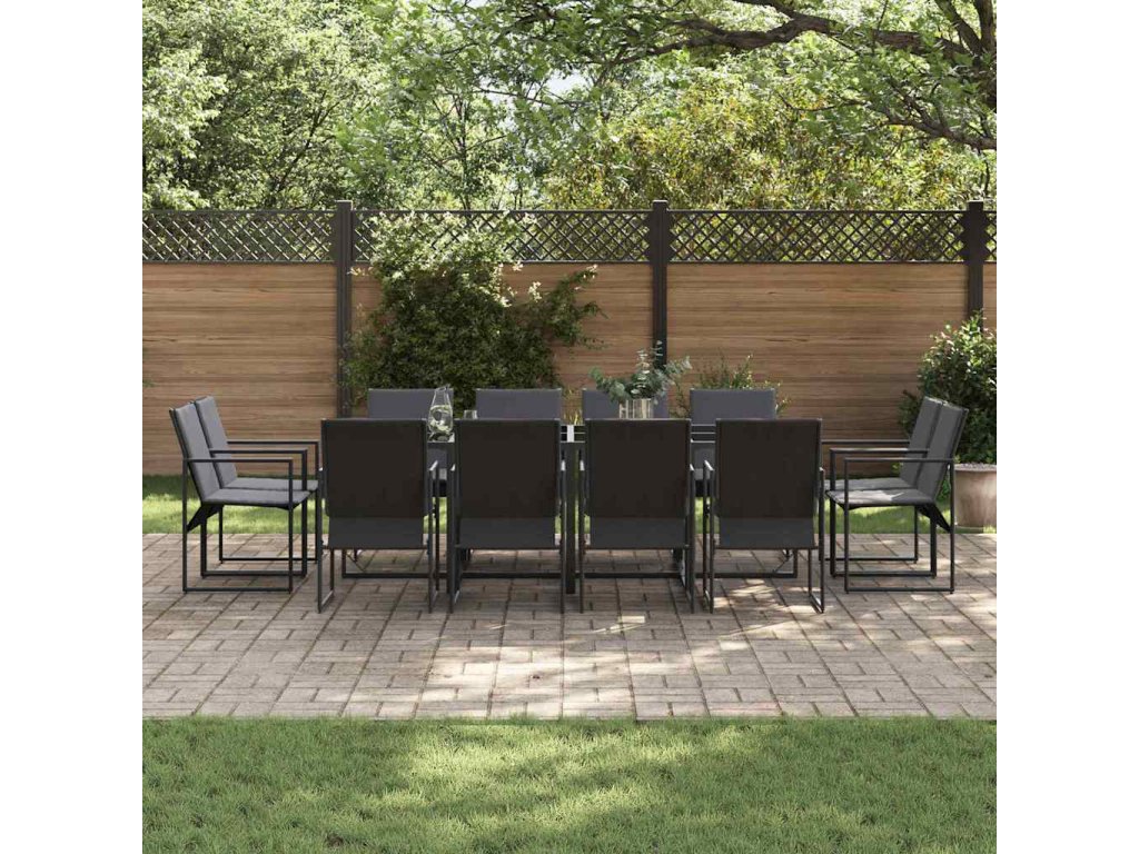 Tahle moderní zahradní jídelní sada je perfektní volbou pro každého, kdo hledá spojení stylu a funkčnosti ve svém venkovním prostoru. S minimalistickým designem má čisté linie a elegantní černý povrch. Je to ideální volba pro zahrady a terasy a poskytuje příjemné místo na venkovní jídla a společenské akce, přičemž vytváří moderní atmosféru, která ladí s jakýmikoli dekoracemi. Představte si, že si užíváte jídlo pod širým nebem s rodinou a přáteli ve své zahradě, s moderním stylem, který nezapomíná na pohodlí.